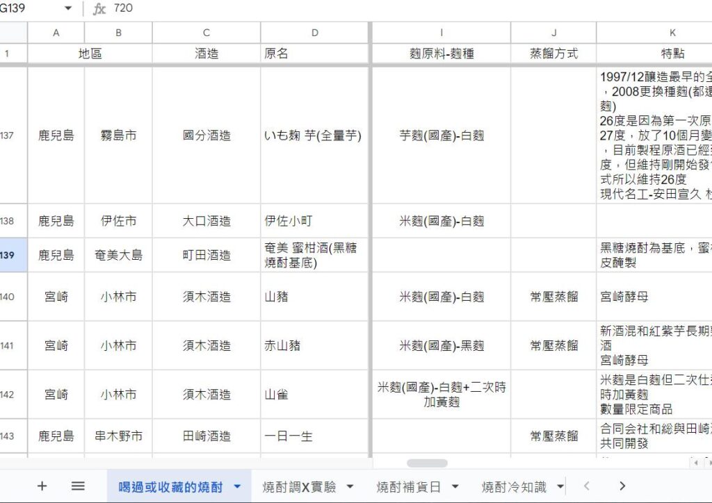 請使用下方Google Sheets連結,祝大家都能找到喜歡的燒酎![]()