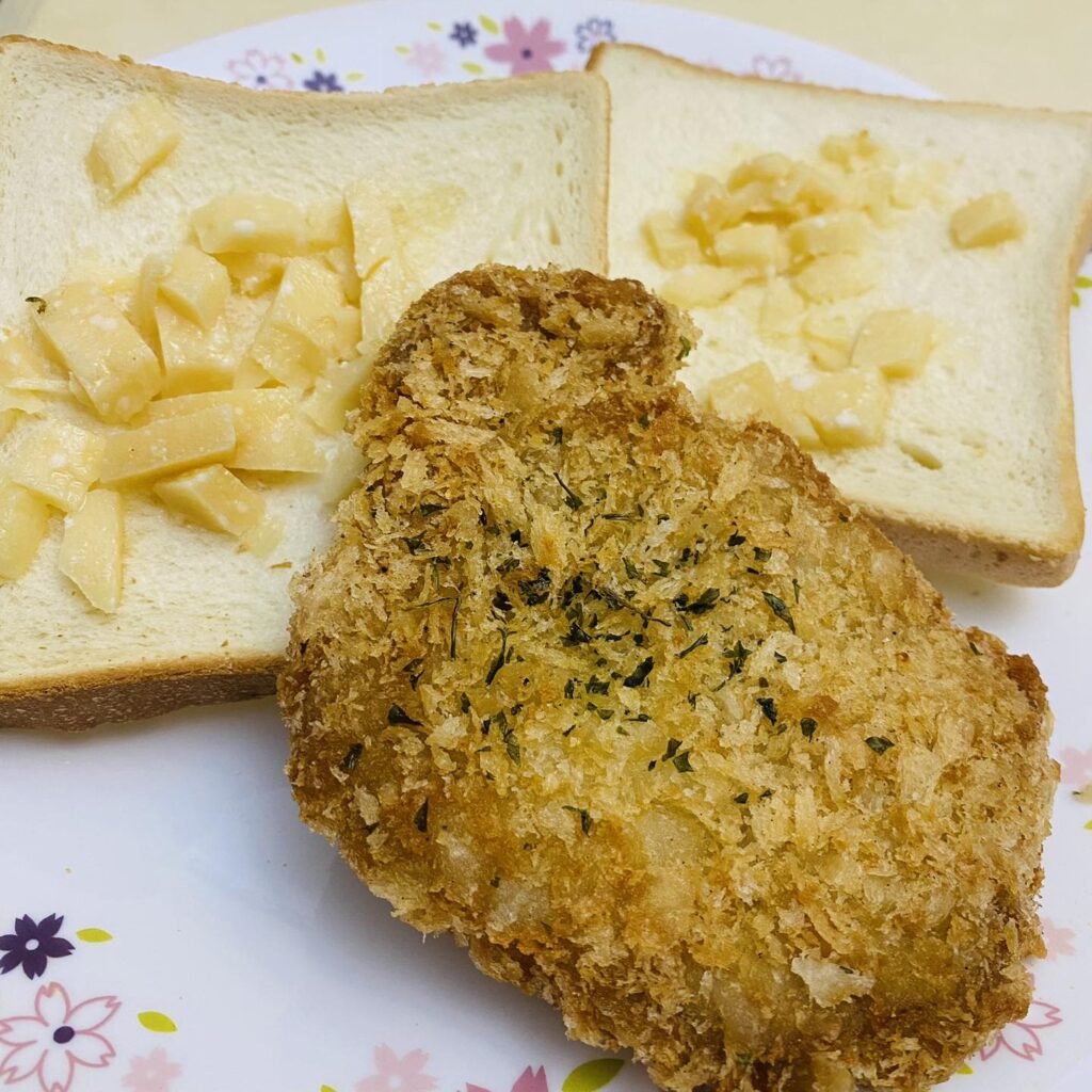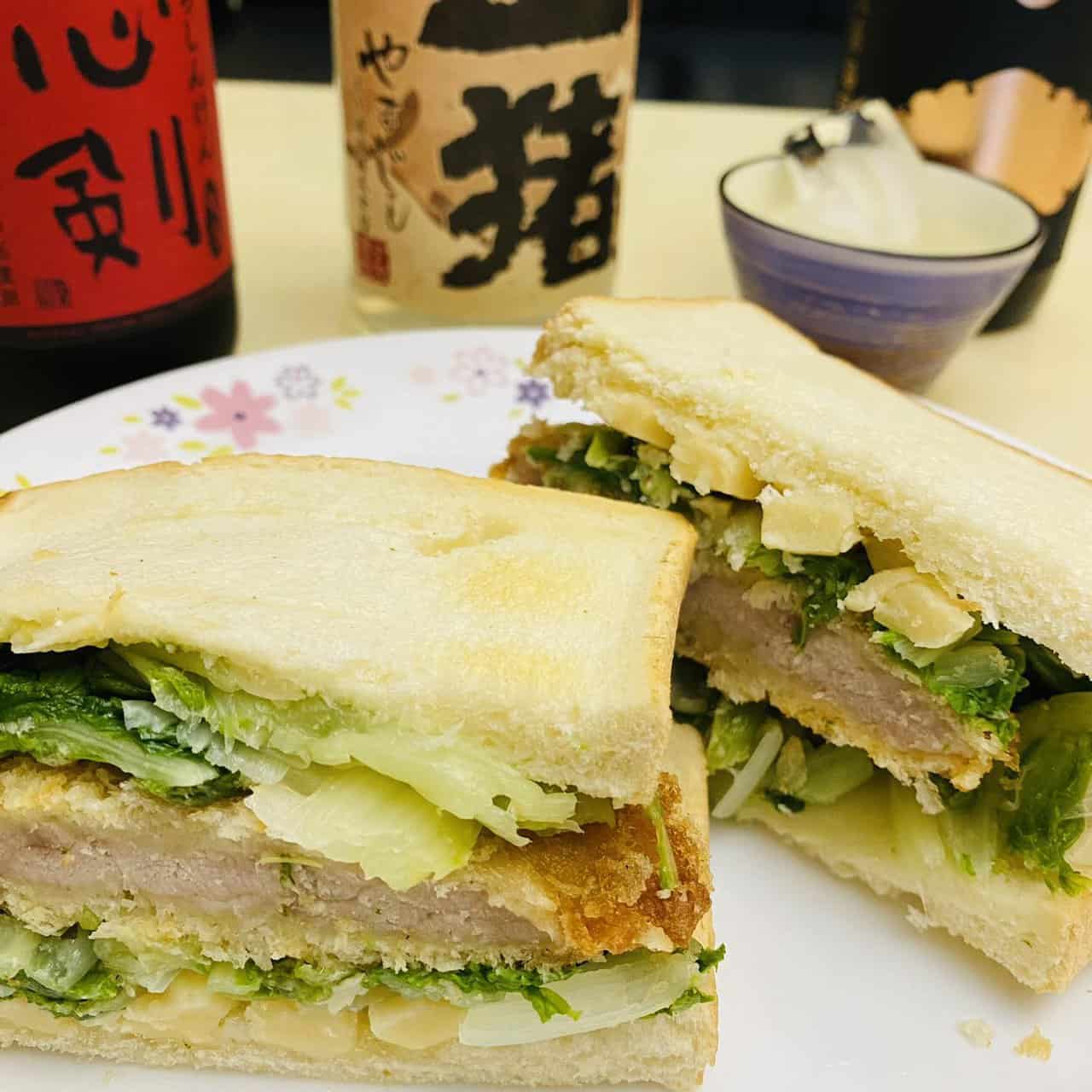 晚餐只有豬排太簡單,做份三明治來配燒酎正好。