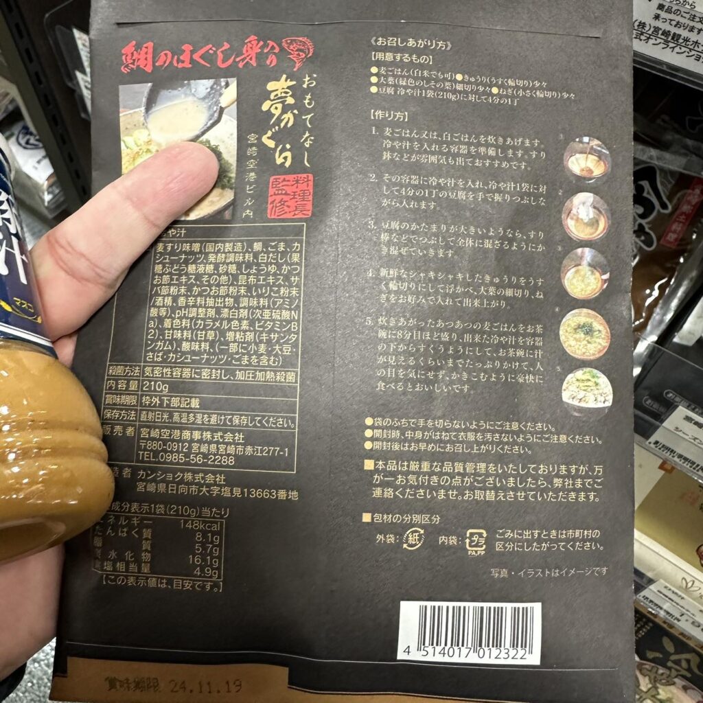 所以可能 薩摩地酒 灰持酒 反而更接近,因為剛好拿「伊佐錦」來做菜,想說先來試試白麴,先用「5:5湯割」把味噌攪拌進燒酎,喝起來像是「喝的豆腐乳」,「7 燒酎 : 熱水 3」會比較有 芋燒酎 的甘甜 與 喝到 味噌發酵帶著的鳳梨甜味,加冰塊喝更好喝,很像來沒加 青紫蘇、小黃瓜和 秋葵的「宮崎冷汁」,熱天拌飯好吃的