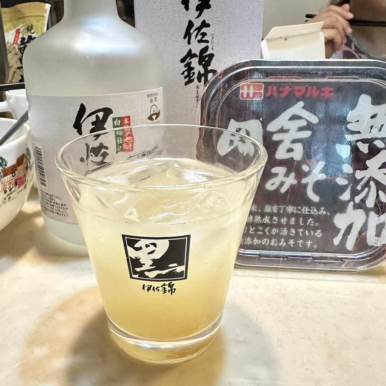 所以可能 薩摩地酒 灰持酒 反而更接近,因為剛好拿「伊佐錦」來做菜,想說先來試試白麴,先用「5:5湯割」把味噌攪拌進燒酎,喝起來像是「喝的豆腐乳」,「7 燒酎 : 熱水 3」會比較有 芋燒酎 的甘甜 與 喝到 味噌發酵帶著的鳳梨甜味,加冰塊喝更好喝,很像來沒加 青紫蘇、小黃瓜和 秋葵的「宮崎冷汁」,熱天拌飯好吃的