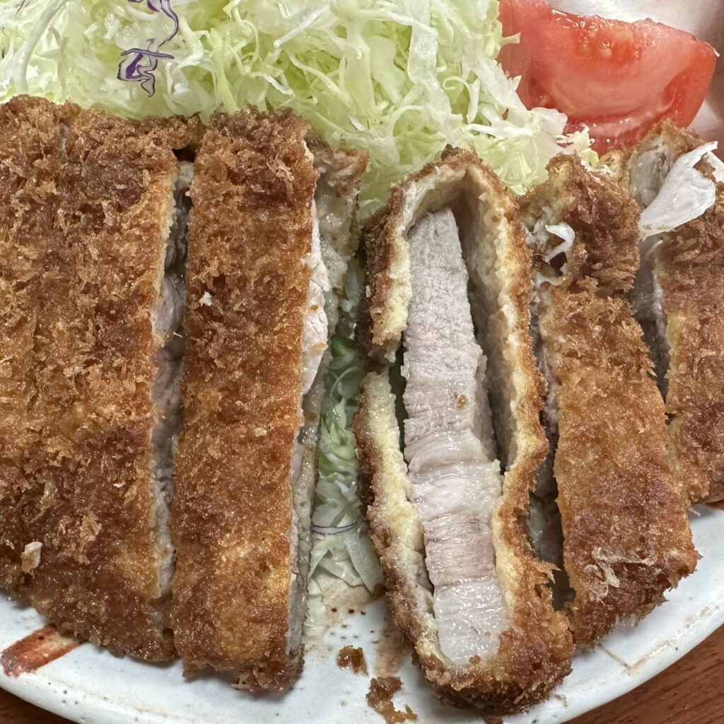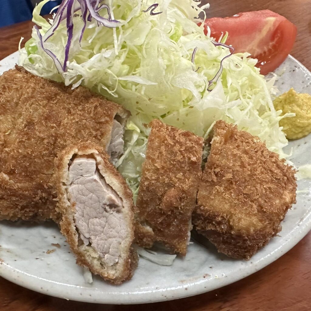 他的豬排非常 香嫩多汁且肉味也很夠,最重要就算稍微冷掉還是能有軟嫩的感覺,且不會感到油膩,不管是豬排或味噌湯鹹度也都剛好,很合台灣人的口味,感覺鹿兒島和宮崎,好像都沒吃那麼鹹,連醬油還還有點甜,有種很熟悉的味道,不過不到台南那麼甜拉