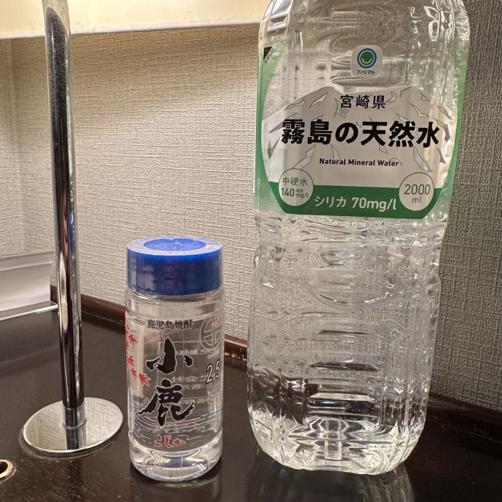 因為要開車,因此沒在 竹亭 喝燒酎,選擇買罐小瓶 小鹿回去喝,順便買罐 霧島礦泉水,有點後會沒選當地有的 前割版小鹿,500ml 12%很方便,因為那罐礦泉水真的無敵硬,非常不適合拿來水割🤣