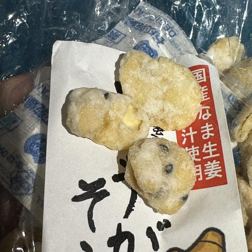 Share 薑汁蠶豆-鹿兒島產 低調下酒零食 2024/03/19 旅/吃 薑味蜂蜜蠶豆 我是薑味愛好者,每次在日本看到薑味煎餅都會買,但神奇的是日本的這種薑糖口味零食,連我怕薑的老婆都很愛吃、可見薑味只是點綴更多的是甜香,且在薑味的影響下不會很太甜,一次可以吃不少 這次在鹿兒島看到有蠶豆加黑芝麻的口味,當然也要買來吃看看,口感比較脆與粉粉的,蠶豆味道會在最後展現,還蠻好吃的,比起餅乾型會比較甜,但香味也比較多變,他黑芝麻加的不多,但起到畫龍點睛的效用 拿來當配燒酎的零嘴還蠻不錯的,推薦有看到可以試試,不知道台灣唐吉有沒有進貨,下次來去找找