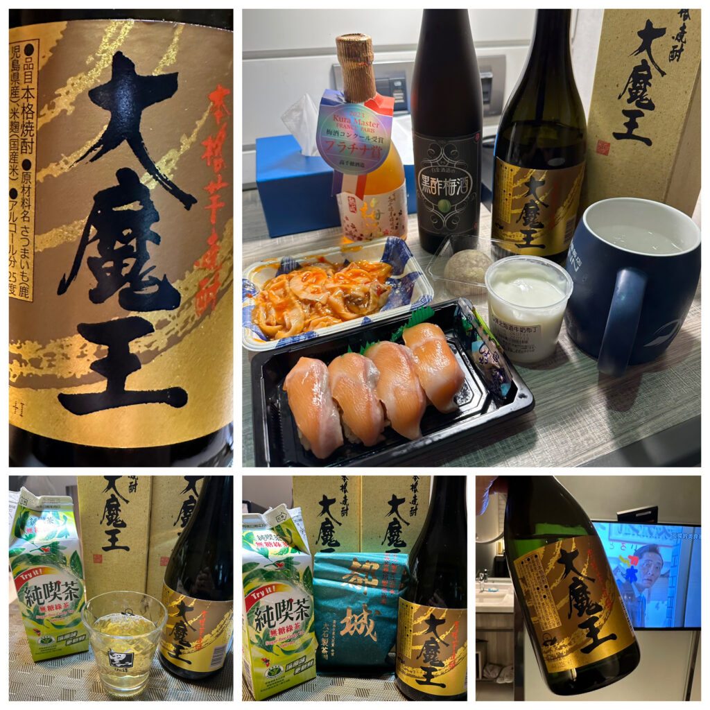 「大魔王 濱田酒造」味道乾淨有高級感,喝的出煎茶香、荔枝果香和些微地瓜香,雖然酒精味比較重,但確超搭 現泡煎茶 或「純喫茶 無糖綠茶」很好喝