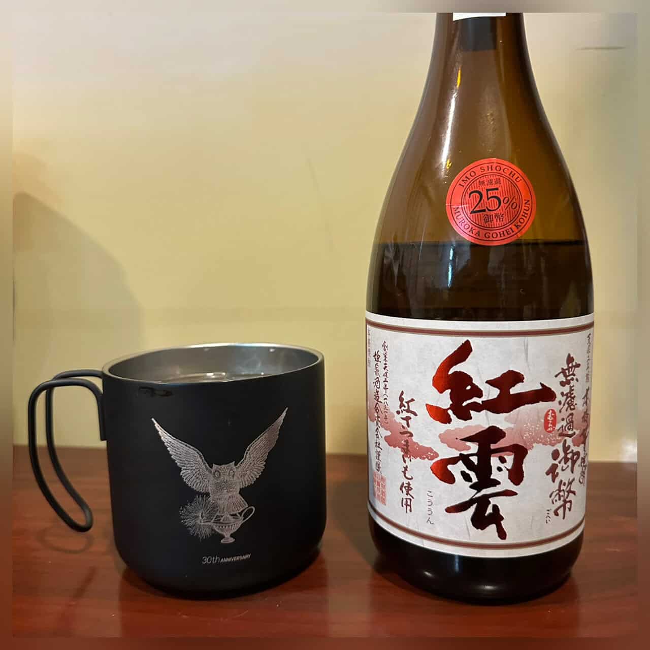 使用 紅薩摩芋+白麴+常壓蒸餾 與 無過濾設定的「紅雲」,雖然沒到「紫空」那麼打破 特定芋 既有的印象,整體都還在紅芋的常見範疇內,但真的是蠻好喝的,甜香夠有酸度抑制膩感,有點適度的酒感,任何溫度喝都沒有明顯缺點,是可以配合各種季節喝的一隻好燒酎,推薦給喜歡有點甜味但又怕太膩的酎友享用
