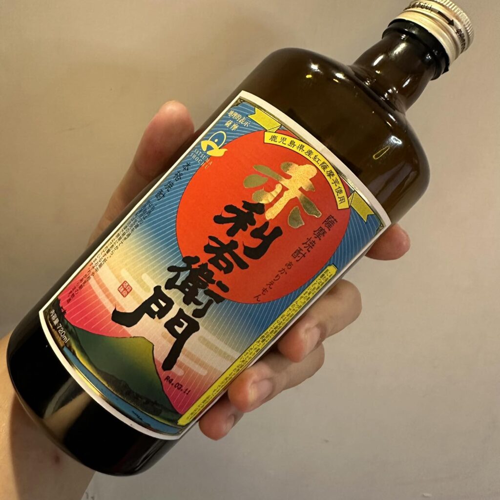 「赤利右衛門 指宿酒造」燒酎偵探遊戲,故事要從酒瓶的標示與隱晦的背標介紹開始,介紹寫著 他用的是 紅薩摩芋,除了利右衛門味道的傳統味道外,還有加上甘甜華麗的香氣
