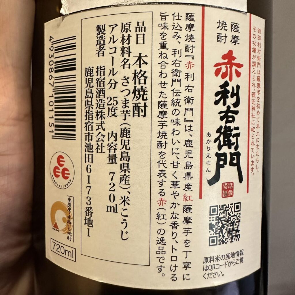跟「利右衛門」調和,所以「赤利右衛門」其實是一罐「紅薩摩 黑麴 + 黃金千貫 白麴」的組合,雖然官網介紹只明白寫了「紅薩摩+黑麴」,但麴那邊卻註明了「黑麴、白麴」,終於確認了答案