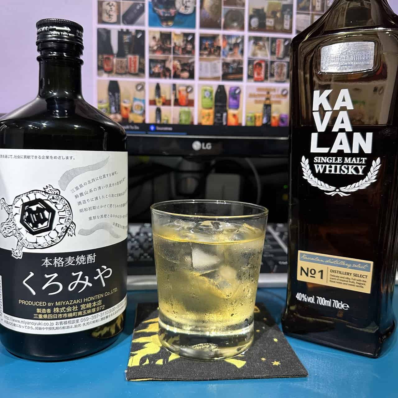 先前看到日本酎友參觀「KAVALAN宜蘭工廠」,想起在鹿兒島和宮崎的大超市都有看到,KAVALAN的蹤影(從我拍的照片,可以看到台灣比較便宜,這才對啊😄),就想說來下「日本燒酎 割 台灣威士忌」,比例是 黑宮 9:1 KAVALAN No.1,除冰塊外不加一滴水