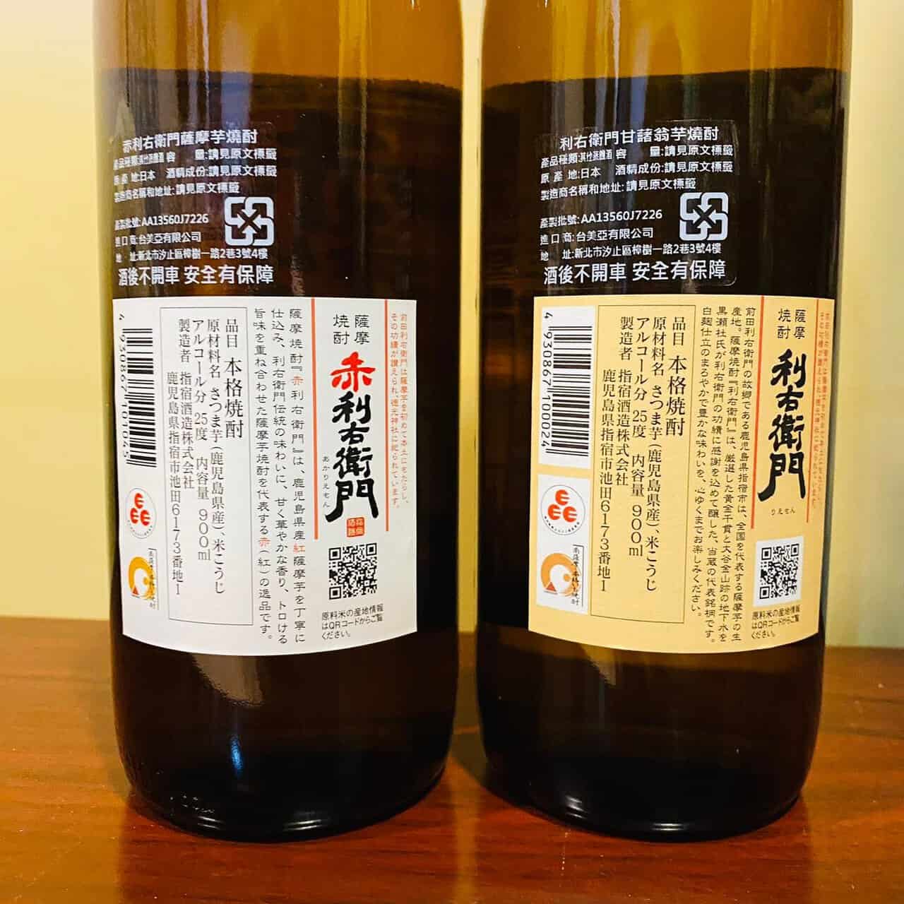 「甘藷翁 利右衛門」(からいもおんじょ)芋燒酎的氣味是新鮮的地瓜味道,不像是烤地瓜或是蒸地瓜,比較多像是聞到葉子的感覺,酒精味道不怎麼濃厚刺鼻,入口的酒液非常滑順,甜味不怎麼明顯,有少少的苦味。