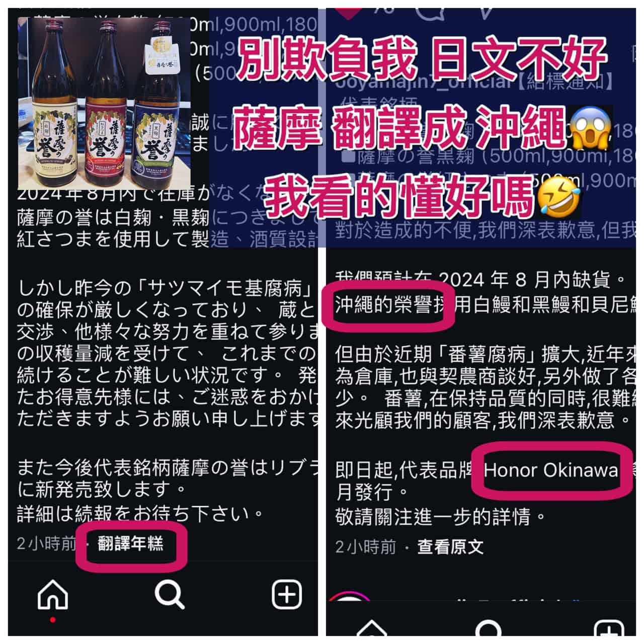 - 我用了幾次ig的「翻譯年糕」發覺有些都蠻好笑的,我覺得很可能是「win 3.1翻的」,雖然我日文不好,但「薩摩 不等於 沖繩」我知道好嗎,下面還硬用英文,別想誤導我🤣