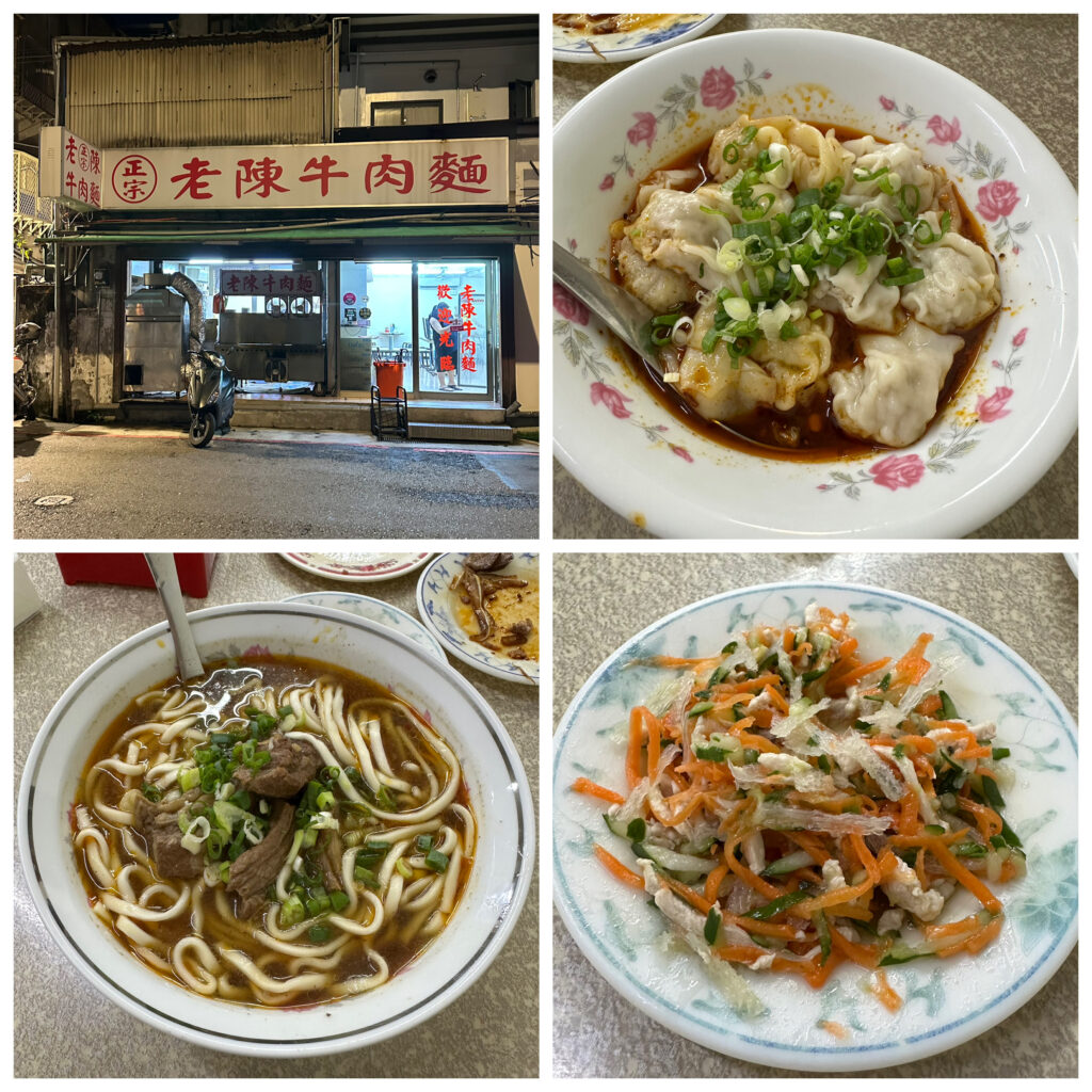 採購完我們到附近想找了牛肉麵吃,意外找到「南京東路四段133巷 老陳牛肉麵」,牛肉麵的麵很有口感,牛肉厚又軟味道也不錯,辣油很香有點乾香菇香,紅油炒手很傳統好吃,小菜有點像水泡菜,裡面還有粉絲和肉絲,味道蠻清新的,東西都蠻好吃的,推薦大家有經過可以去吃看看
