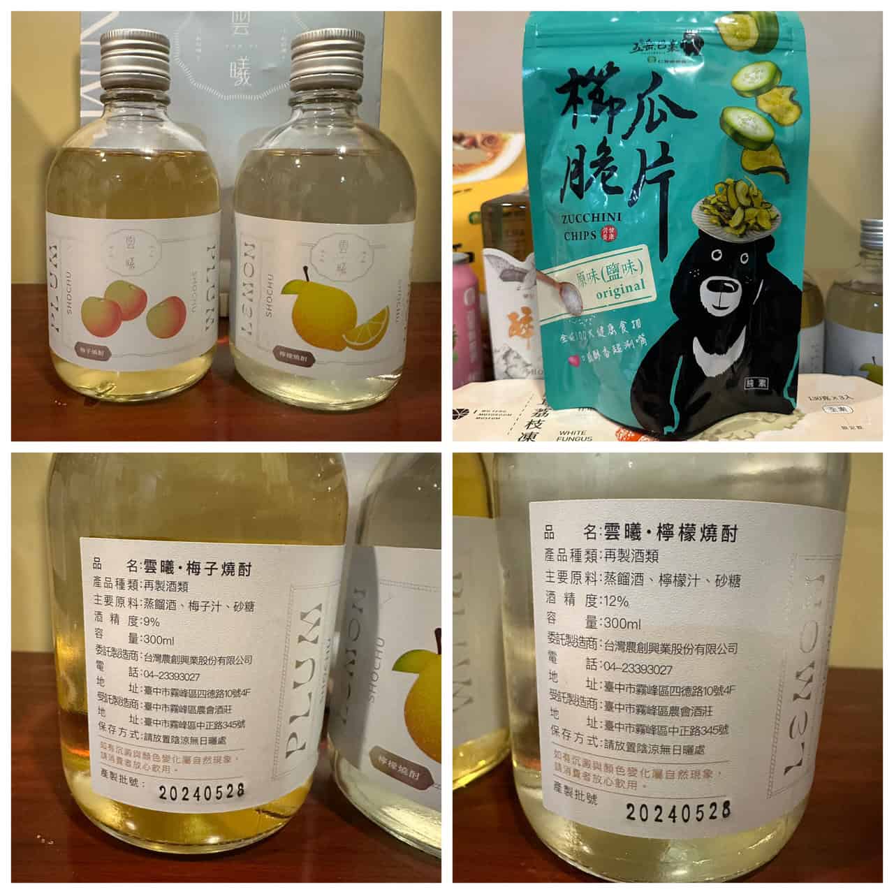 現場還有一些有趣的農會產品,我們買了「櫛瓜脆片」來當下酒菜,還有些好玩的產品,大家有到小巨蛋的話,可以去「霧峰區農會酒莊 直營的旗艦店」,在南京和敦化交叉口,那個6號出口進去,也就是服務台旁,逛逛試試燒酎,順便買點南投直送的產品 哈哈