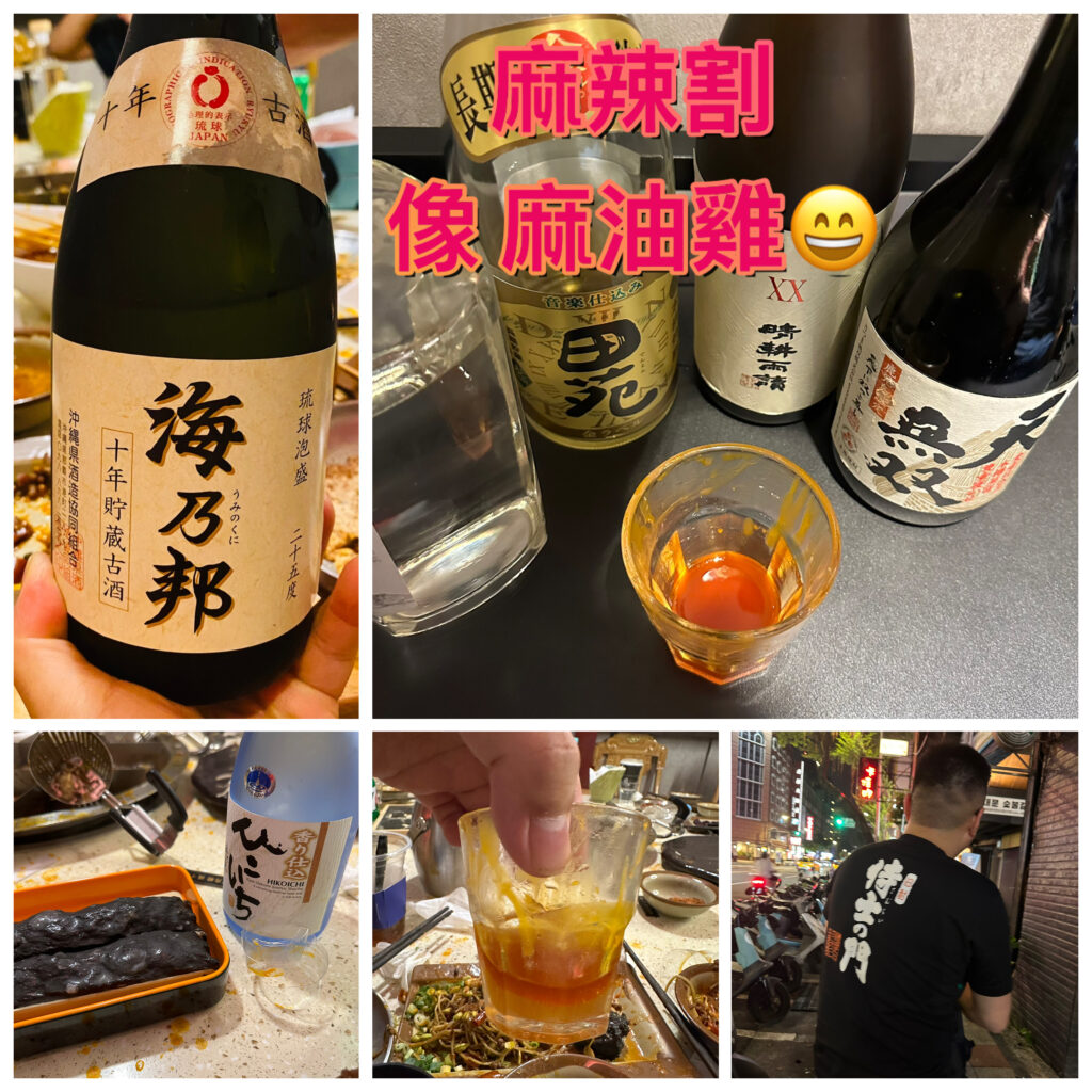然秉持什麼都要加看看的「嘗試心態」,我試了「麻辣湯+芋燒酎(天無雙+XX晴耕雨讀)」這個看起來很像整人遊戲的配法,我覺得其實很像「麻油雞」耶,真的不會不好喝,可惜當時沒湯匙,如果油少一點,再煮個雞肉根本分不出來![]()