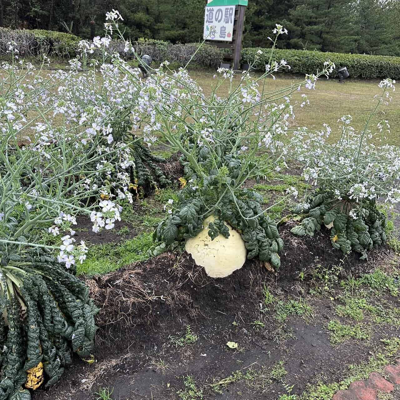 櫻島蘿蔔 真的超巨,吃起來確不會老,跟一般蘿蔔一樣,花我有特別聞了,有點像味道很淡的菊花