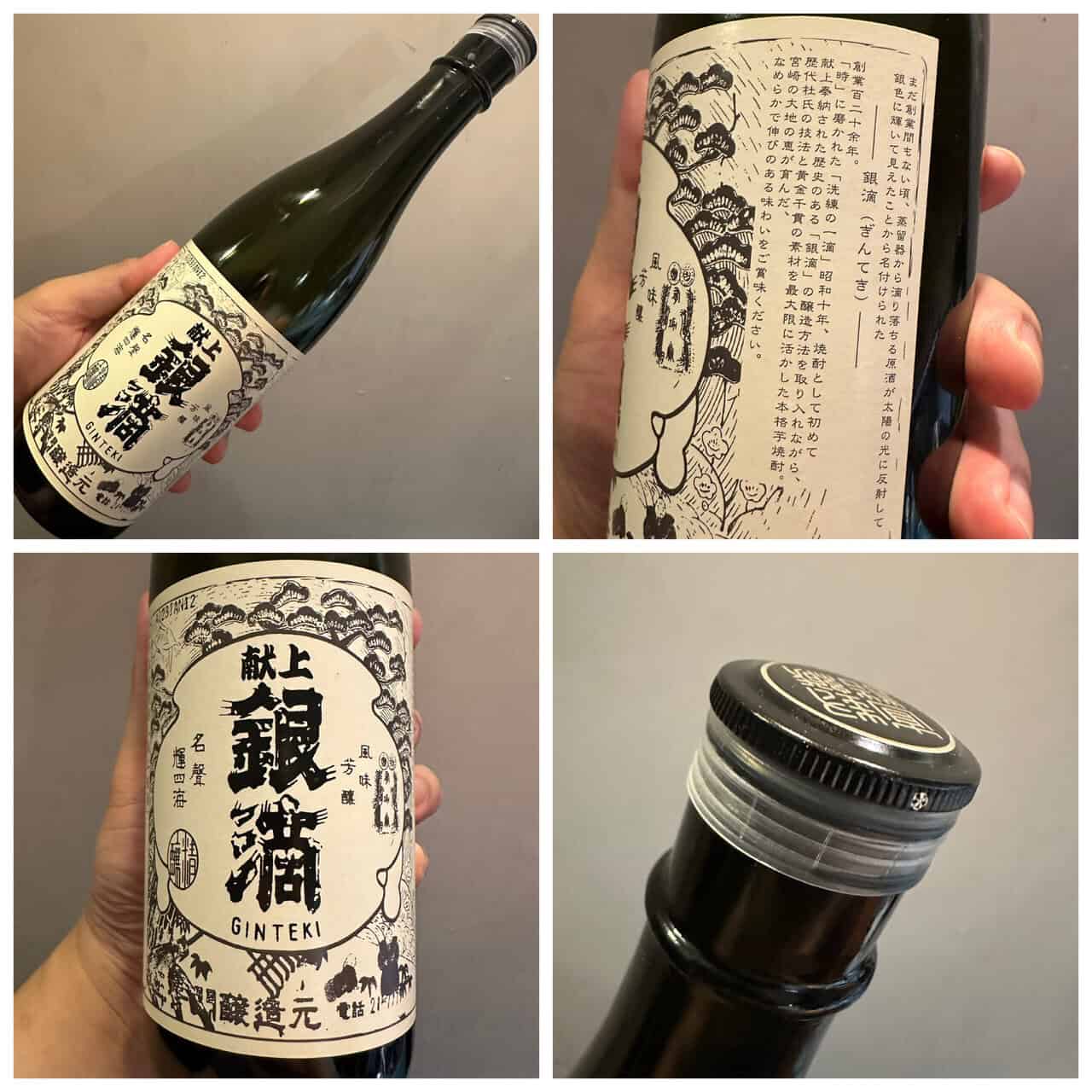 根據介紹「獻上銀滴」目前使用的是「常壓蒸餾 與 減壓蒸餾 混合而成」,而當初是在 昭和10年(1935)獻給天皇,根據日本多方說法總結「減壓蒸餾」使用在燒酎上普及,大約落在 昭和40後半或50年以後(也就是至少 1970),而第一瓶商品化的「100%減壓芋燒酎-爽飫肥杉」則是到了1983,由 日南井上酒造 推出