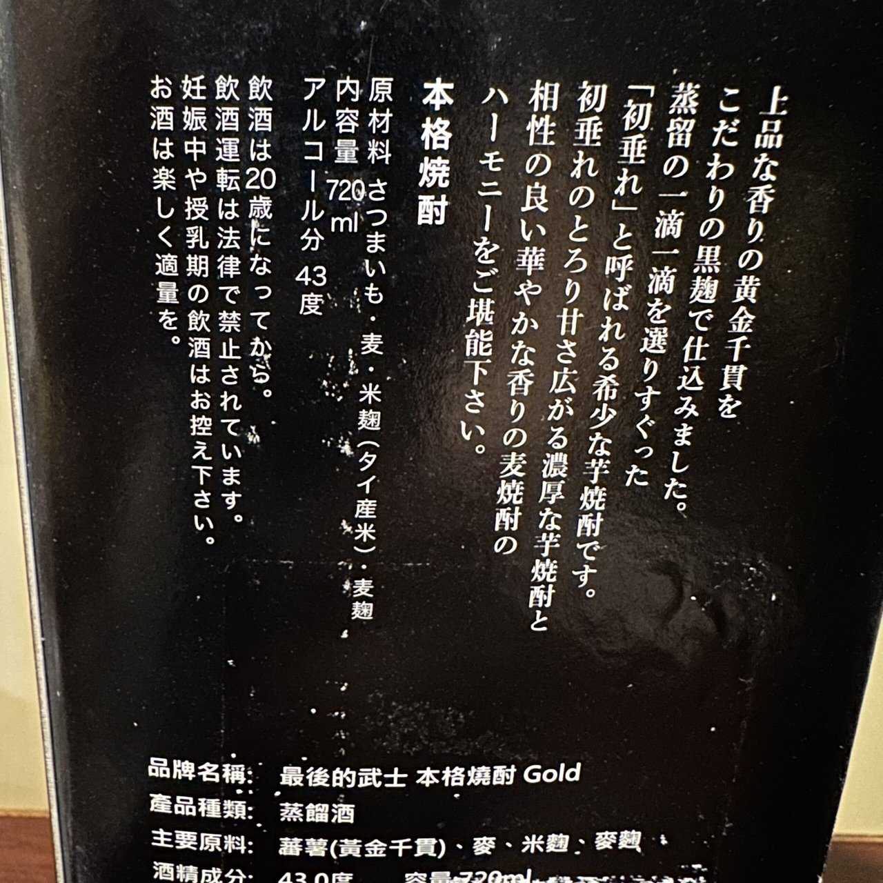 老實說「最後武士 Gold」當初也是有點貪便宜買的,因為43% 跟 初垂 且是 神酒造,這規格配上 唐吉 賣的價錢真的很划算,而味道從剛開始的「這是什麼?!」,到開瓶半年後發現他向善了,比較能感受出「芋 和 麥各自的香氣與甜味」,雖然 凍飲單喝 還是有點硬,但搭配燒烤真的還不錯