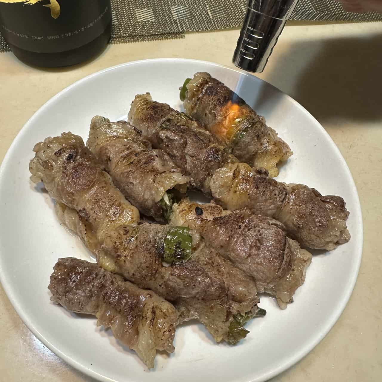 焦香油脂豐富的「炙燒牛五花」 加上 強悍的「最後武士 Gold」,真的是絕配,堪稱勢均力敵,燒酎變得順且很爽口,一捲肉配一口酒,這種 武士道 很厲害!