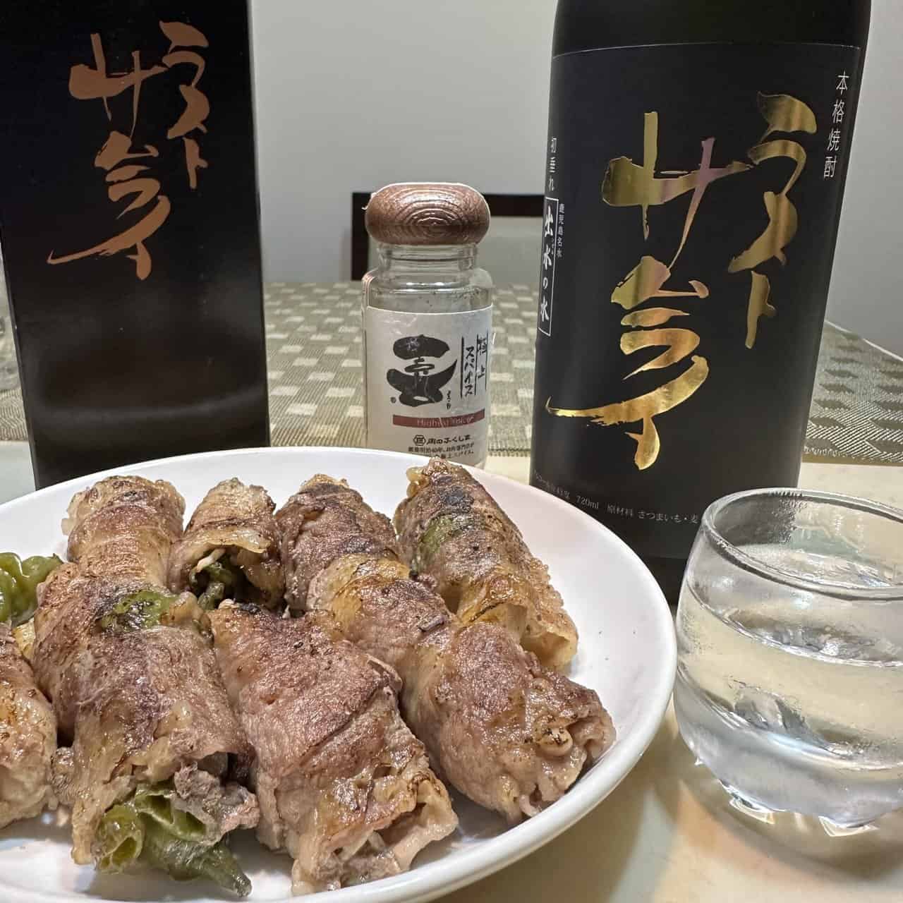「最後武士 Gold 芋麥混合燒酎-神酒造」是43%初垂原酒,單喝有點猛烈,因此就決定來凍飲,並搭 自家炙烤牛五花 當宵夜