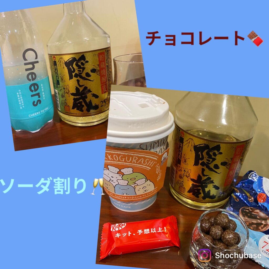 下午茶的時候若喝一點 隠し蔵 再搭配Kit Kat巧克力餅乾很合,本格麥燒酎與偏甜的巧克力在口中混合,還能在濃厚的巧克力味嘗到樽桶味與香甜,可是裹餅乾的巧克力不能太少,也不要吃可可含量太高的巧克力餅乾,不然反而會被燒酎激出高高的苦辣,其他氣味都被掩蓋了。