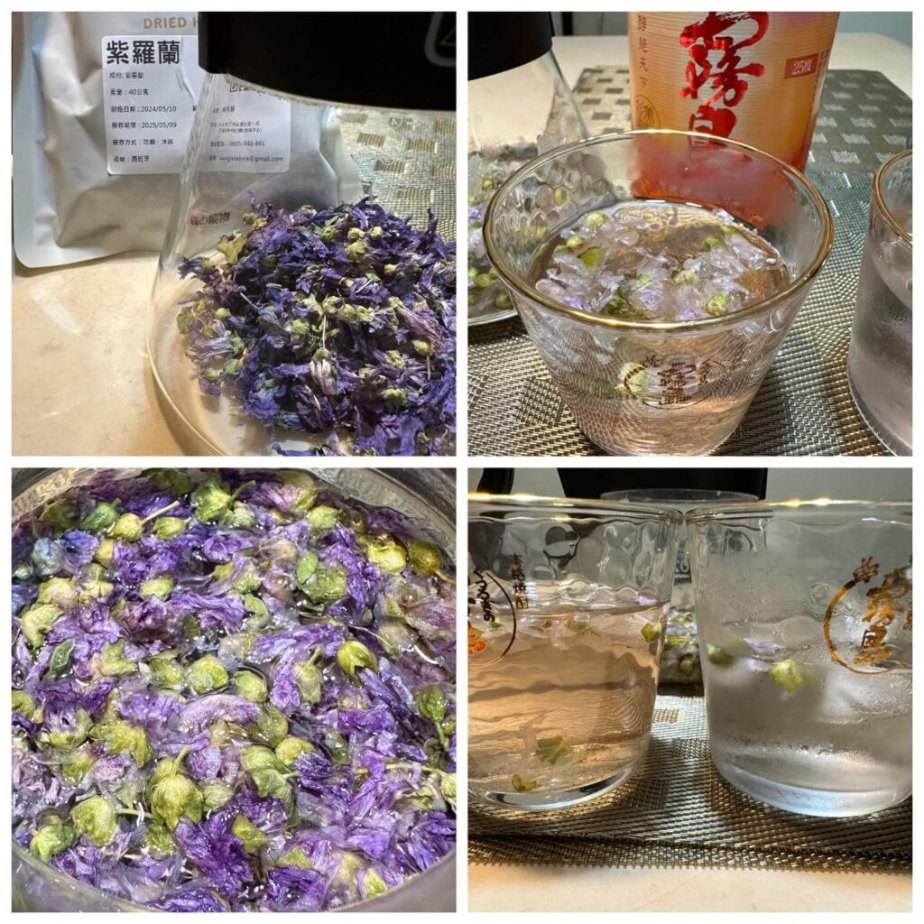 我們都認為這次的嘗試,顯示紫羅蘭在芋燒酎裡有淡雅宜人的香氣變化(還有點粽葉香,這是端午特典嗎🤣)我們預計下次再找一瓶紅芋燒酎,直接加入紫羅蘭花釀製,酒精更能萃取原料的香味,期盼紫羅蘭花在芋燒酎裡會有更多美味豐盈的表現。