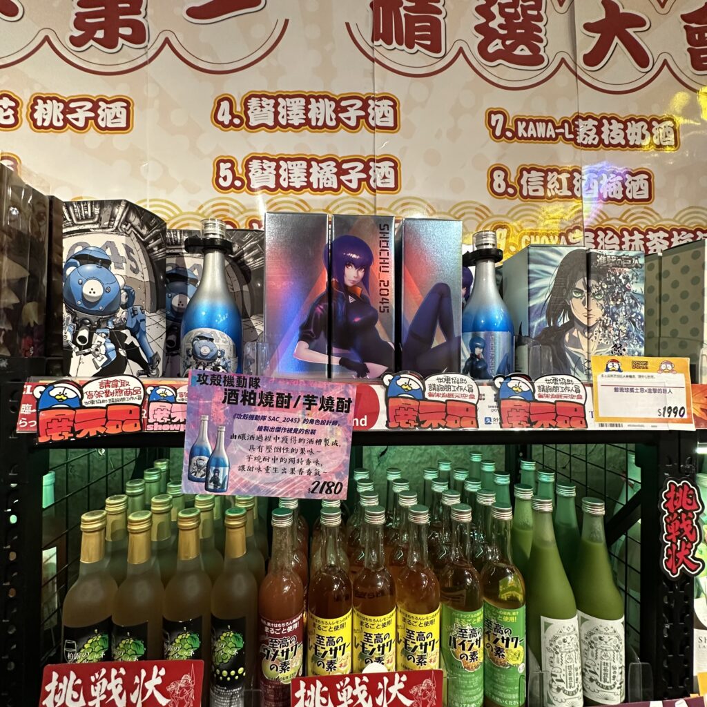 最後我找到「攻殼機動隊燒酎」的新位置了,搬到在二樓的手扶梯附近,跟進擊的巨人作伴😄