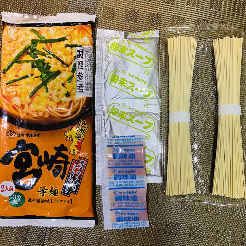 「宮崎辛麵」是普通的麵條,吃起來就普通日式袋裝拉麵味道與口感