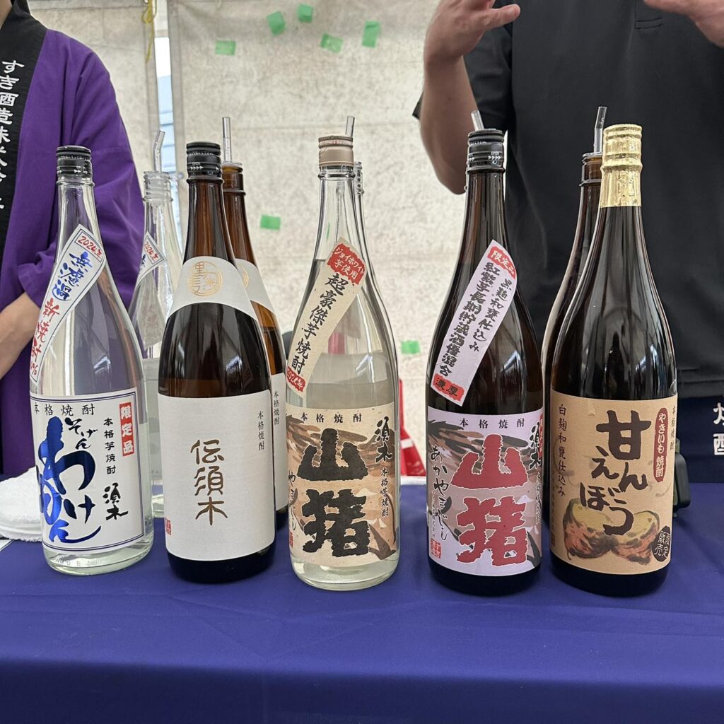 Share 宮崎新燒酎們-焼酎ノンジョルノ宮崎2024 2024/10/27 新聞/活動 / 旅/吃 / 日本焼酎活動現場 / 芋燒酎 這次在宮崎的燒酎慶典,喝了不少台灣很難喝到的「新燒酎」,就是看起來酒有點白濁的燒酎,通常全透明瓶居多,放大概兩三個月就會完全透明,味道據說也會不同 因此是只有9~12月間產地才能喝的限定品,有機會這時間來鹿兒島或宮崎推薦一定要試試 因為同時喝了好幾種,我們感覺新燒酎都有一種很特別的味道,有點像溫泉也有點像煙燻培根,再加上很奔放的香味,蠻特別的,喝習慣會上癮 另外有些燒酎是類似新燒酎狀態出酒造,像:須木酒造的 山豬,台灣看到是透明的,照片中2024出來的是帶著白濁的喔