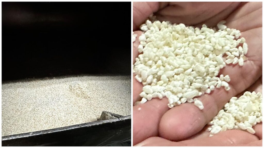 另外照片可以看到旁邊有個有輸送帶的裝置,那是等米麴完成後,將它輸送到旁邊發酵槽的工具喔!不用一袋一袋搬拉,太累了😁