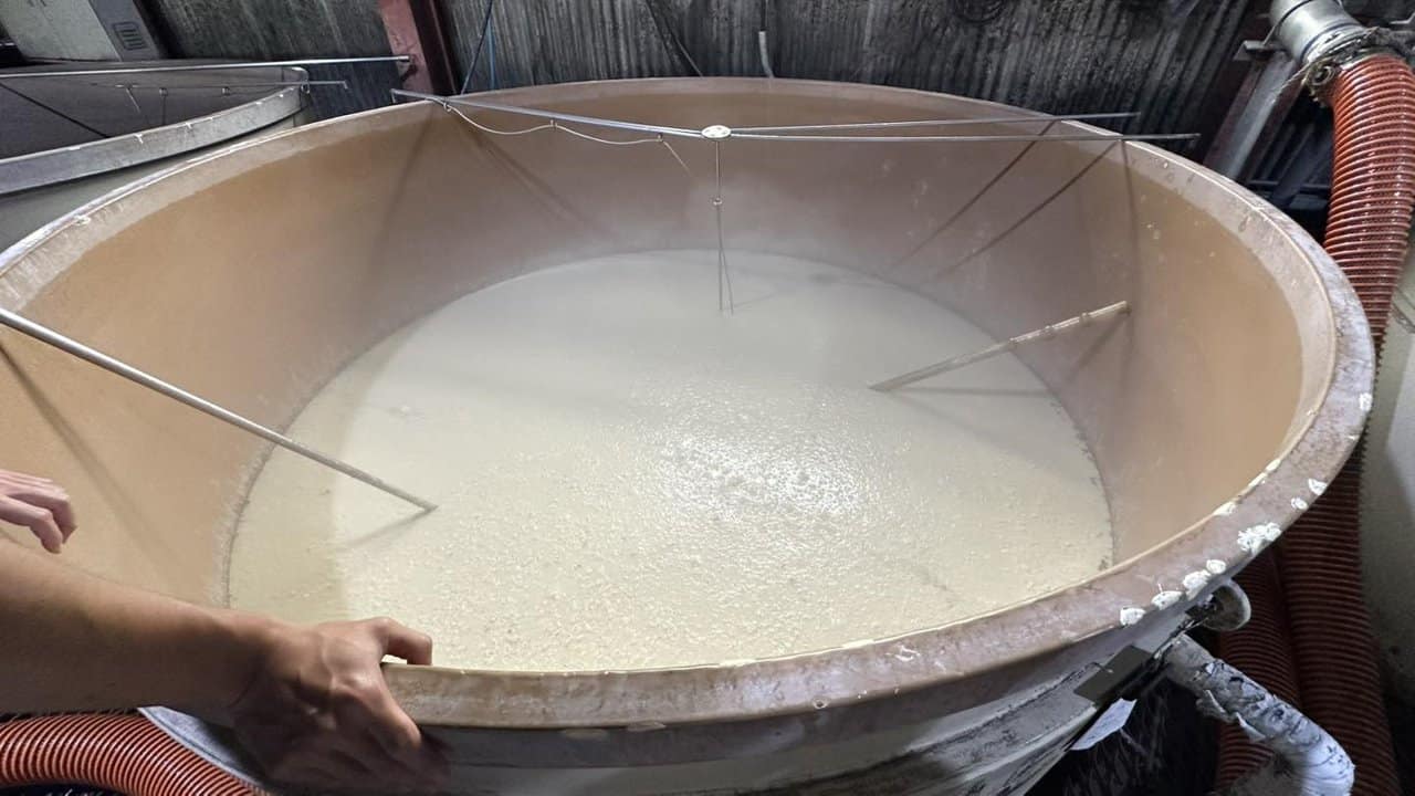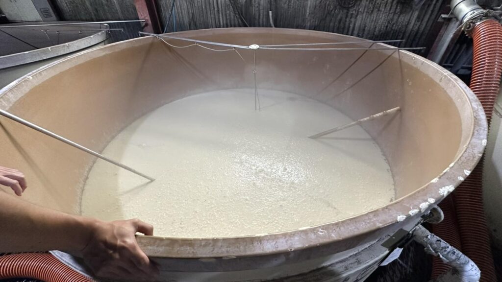 當時剛好都在發酵白麴,水位低的是在做酒母,而後面水位高的是白麴黃金千貫,可以發現很神奇的地方是,發酵過程中居然會有像是雲霧般的氣體盤旋在,酒面上,我日文太差不確定是不是二氧化碳之類的氣體,之後要再來研究一下該怎麼問好🤣