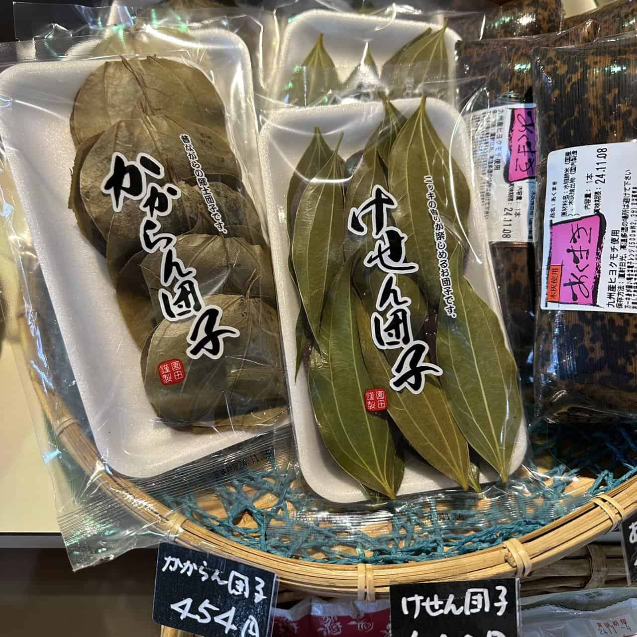 けせん在鹿兒島很多人家前庭院有種,因此說到「けせん」都會跟「鹿兒島鄉土食物」做結合,例如最有名的就是「けせん団子」使用けせん的葉子去包紅豆味道的麻糬,這部分之前介紹過,文章後半會再介紹另一種更少見的「かからん団子」