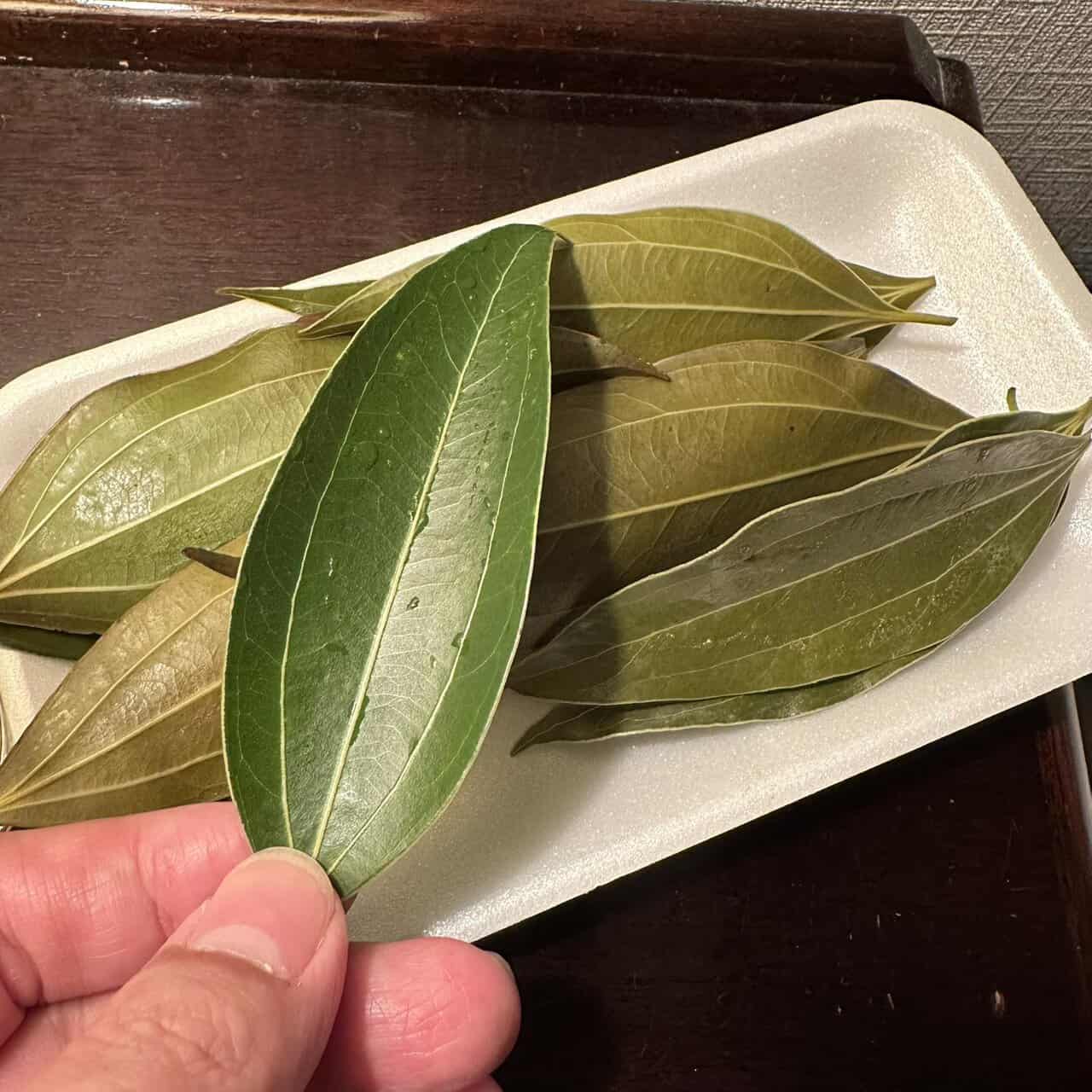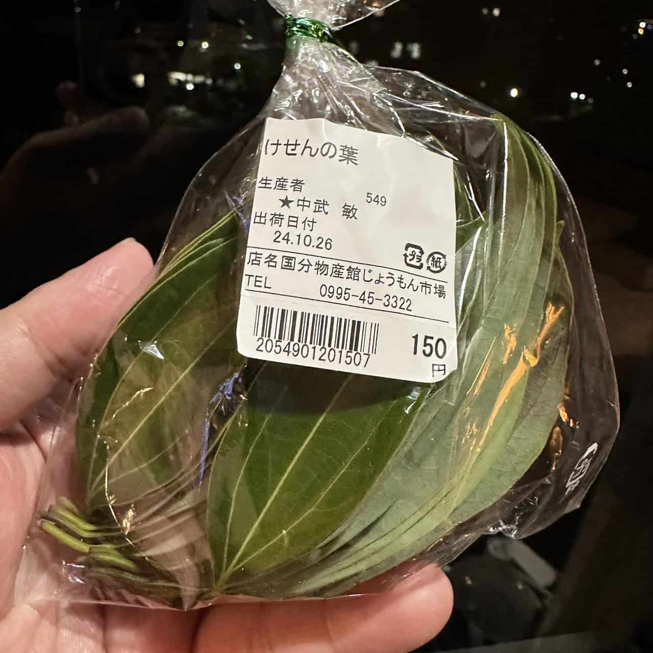 就在我幾乎放棄けせん時,居然讓我們在「鹿兒島 国分物産館じょうもん市場(農特產中心)」買到了遊客很難買到的新鮮けせん樹葉,我咬了一下葉片發現,真的有肉桂味道,但確實比一般常見的錫蘭肉桂來的溫和且甜
