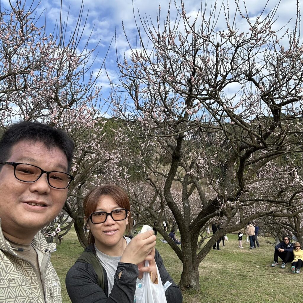 這讓我們想到,鹿兒島 藤川天神的 臥龍梅林,那神社內的濃郁梅香,讓已經在日本賞梅多次的我們,震撼到難以忘懷,畢竟占地大或種類多的梅林不少,但這樣的梅香我們只遇過那次,我想跟地形也有點關係,除了種植超密、大量盛開之外,谷地的特性和風的配合,應該都是成因吧