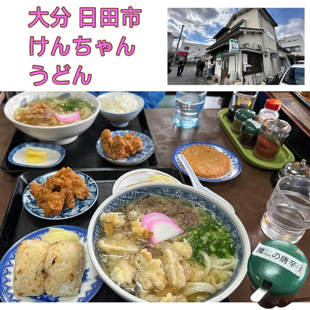大分日田市 只有中午營業的當地人也會排隊的烏龍麵「けんちゃん」,唸起來跟我的「賢」一樣,就暱稱「阿賢烏龍麵」吧😊