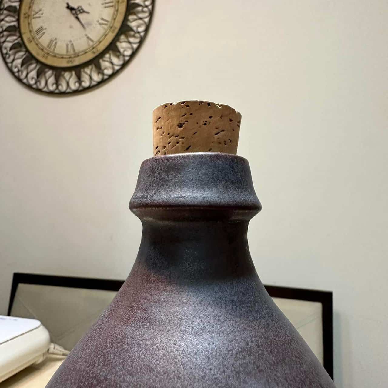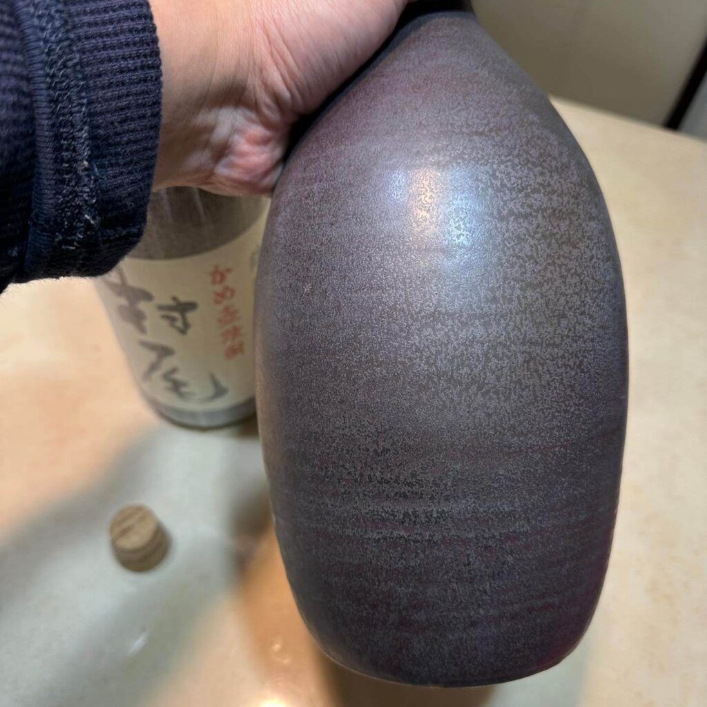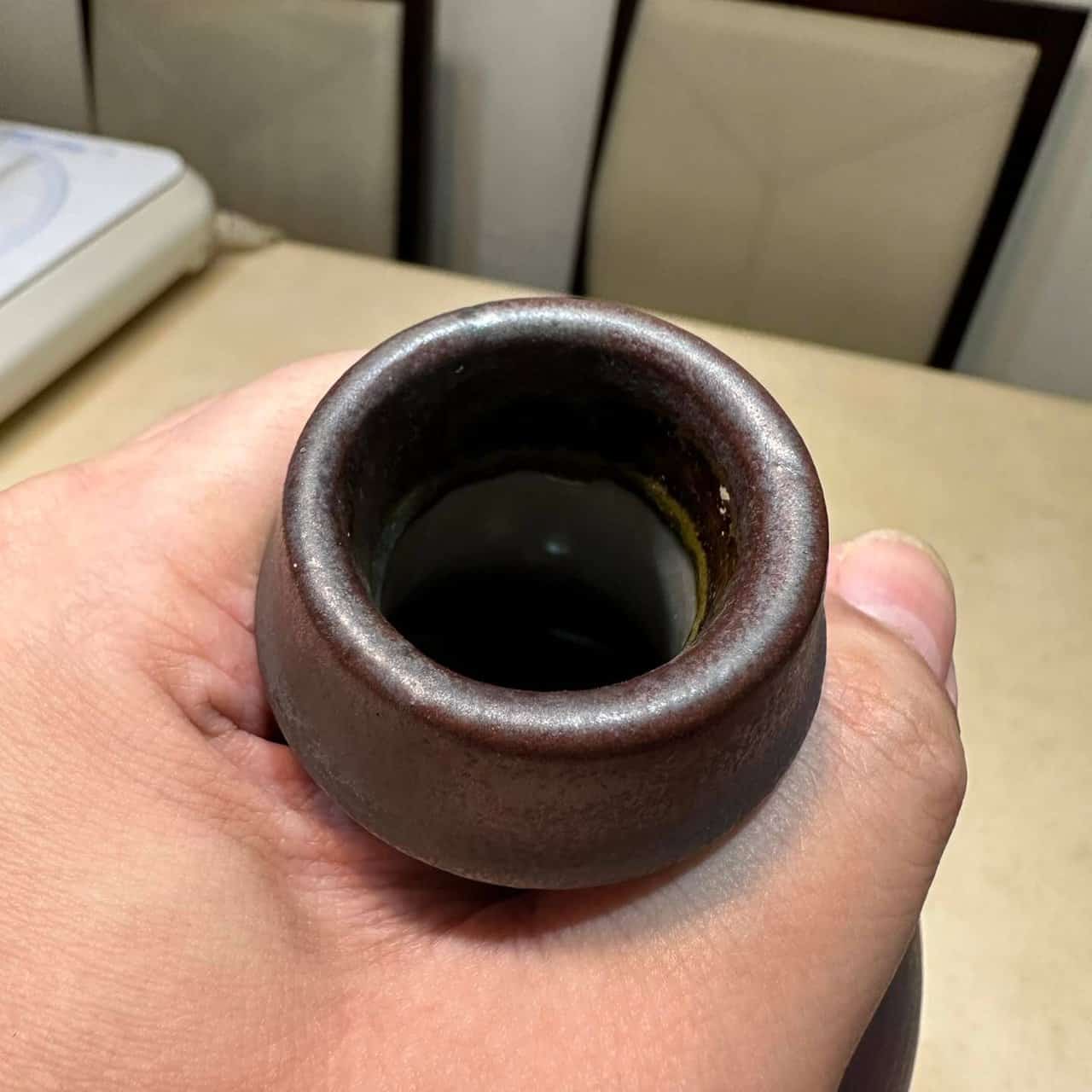 他是1.8L的容量,比較矮胖,所以高度跟720ml差不多,蠻穩的,比1升瓶好收很多,都城燒的質感真的很好,外部鐵釉有樸實沉穩的氣質,內部也有上釉,確保不會滲漏,除了前割外,感覺拿純燒酎來自家熟成一定也不錯🥰