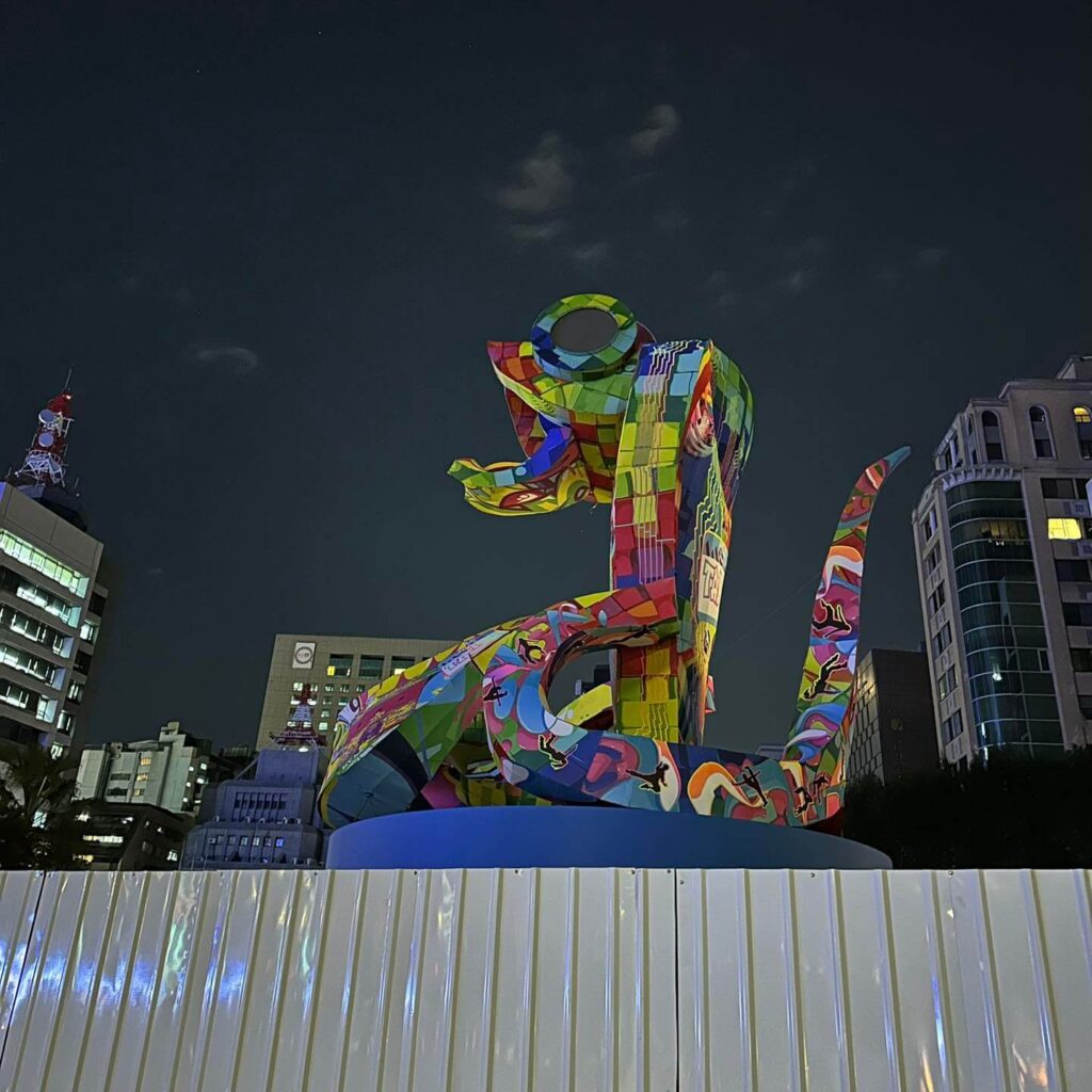 2025台北燈節的蛇年主燈與旁邊的燈區試燈,真的更有年味了,一開始角度暗暗看有點像老鼠,換個方向就有像蛇了🤣