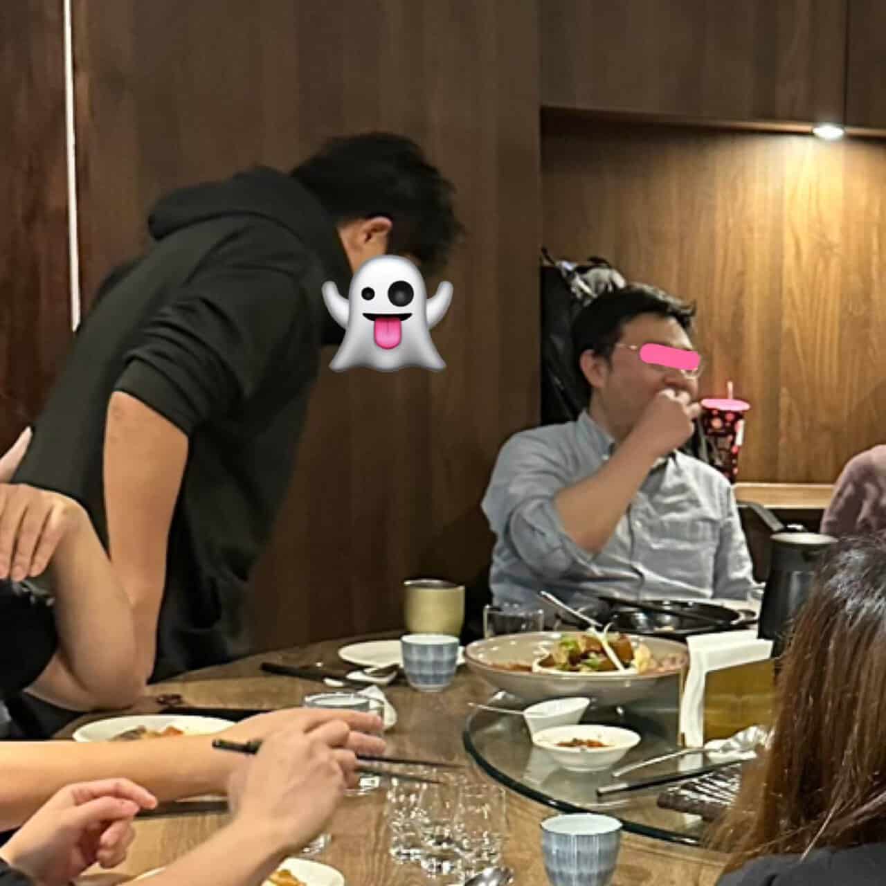 這兩天整理照片時,突然發現有張好玩的相片,某酎友正要起身,隔壁的酎友正好在跟別人聊天,整個畫面就像「下屬跟董事長報告進度」圖,為了保護當事人,我把你們碼起來了,我真的沒故意這樣拍,一切都是意外別打我,畢竟 燒酎部活動 就是很歡樂的場合咩🤣🤣🤣所以讓人一直想參加♥️
