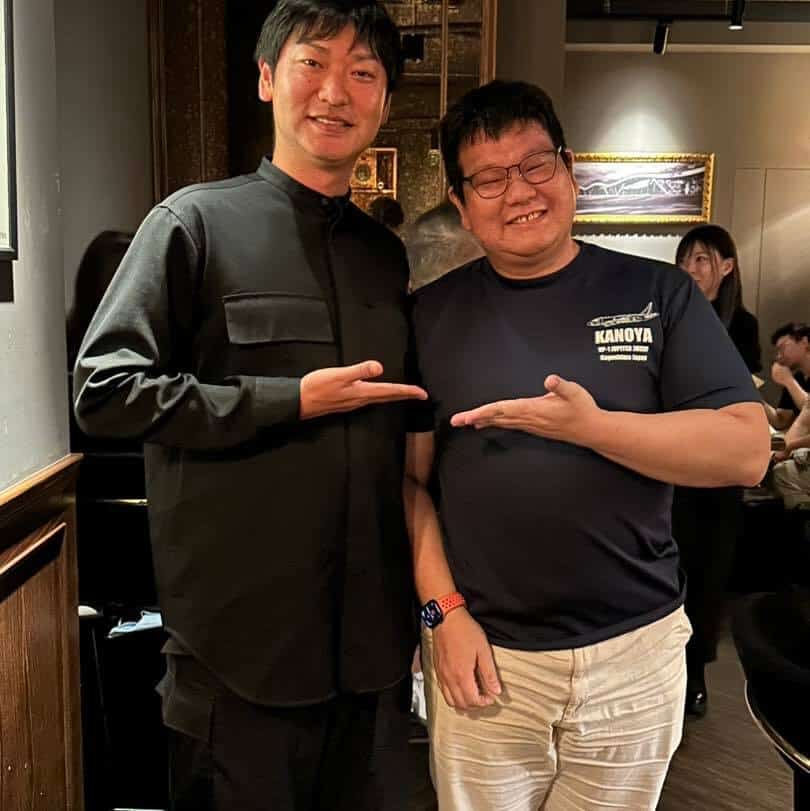 忘了當天為何黑木社長提到他的生日是1月6日,聽到我馬上舉手說,我也是且我們姓名中都還有一個「信」字,所以留下了一張帥氣的合照,之後幫「中々」簽名時社長也貼心地寫下「1月6日生まれ」(但我不敢給他看,我拿「橘」泡「Kesen葉」的事,其實蠻好喝的但怕被打😋)