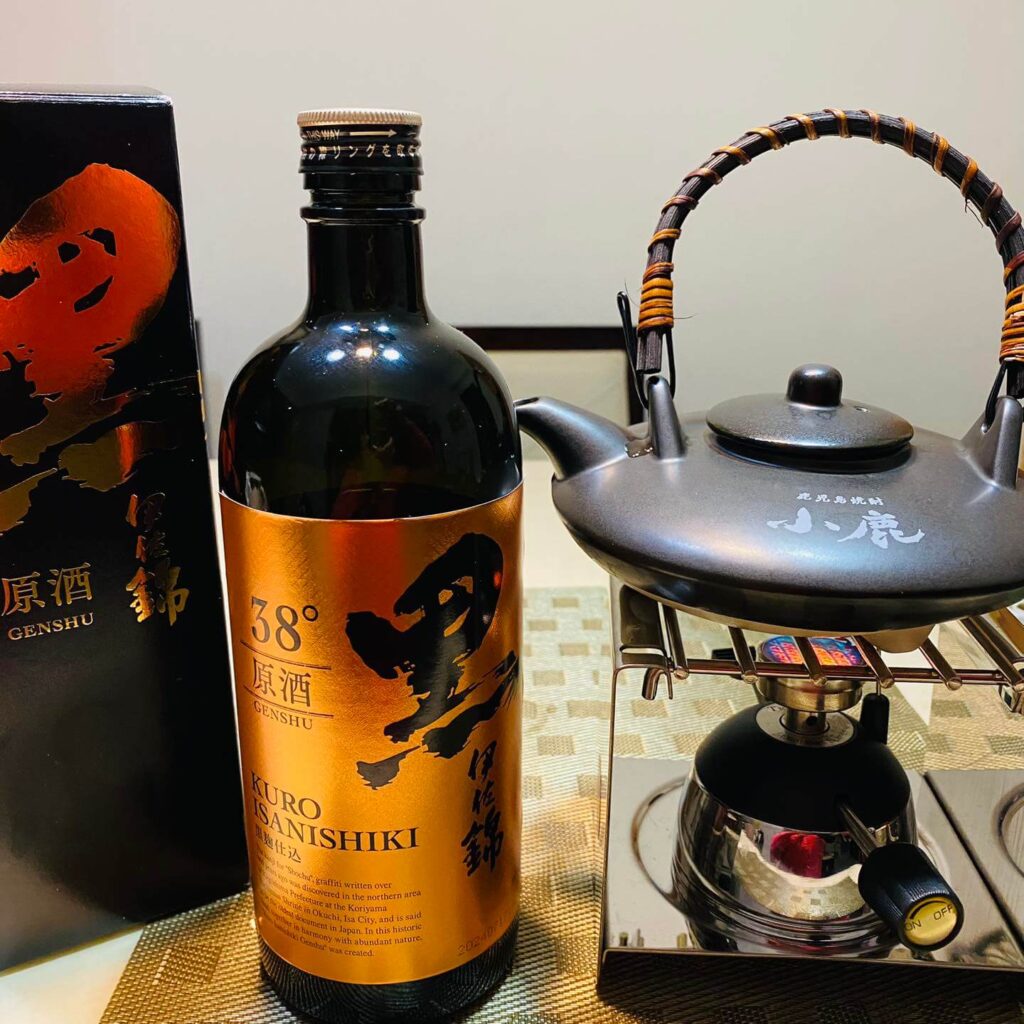 在原酒裡加些濃紅茶,燒酎與紅茶的混合出現變化,味道則有高級普洱茶的醇厚,特別的陳味芳香(絕對不是霉味或悶味喔,怕大家誤會了),紅茶割り的黑伊佐錦原酒表現的口感不會澀、不太苦,而且嘴巴喝完酒後會像吃過桂圓的甜味