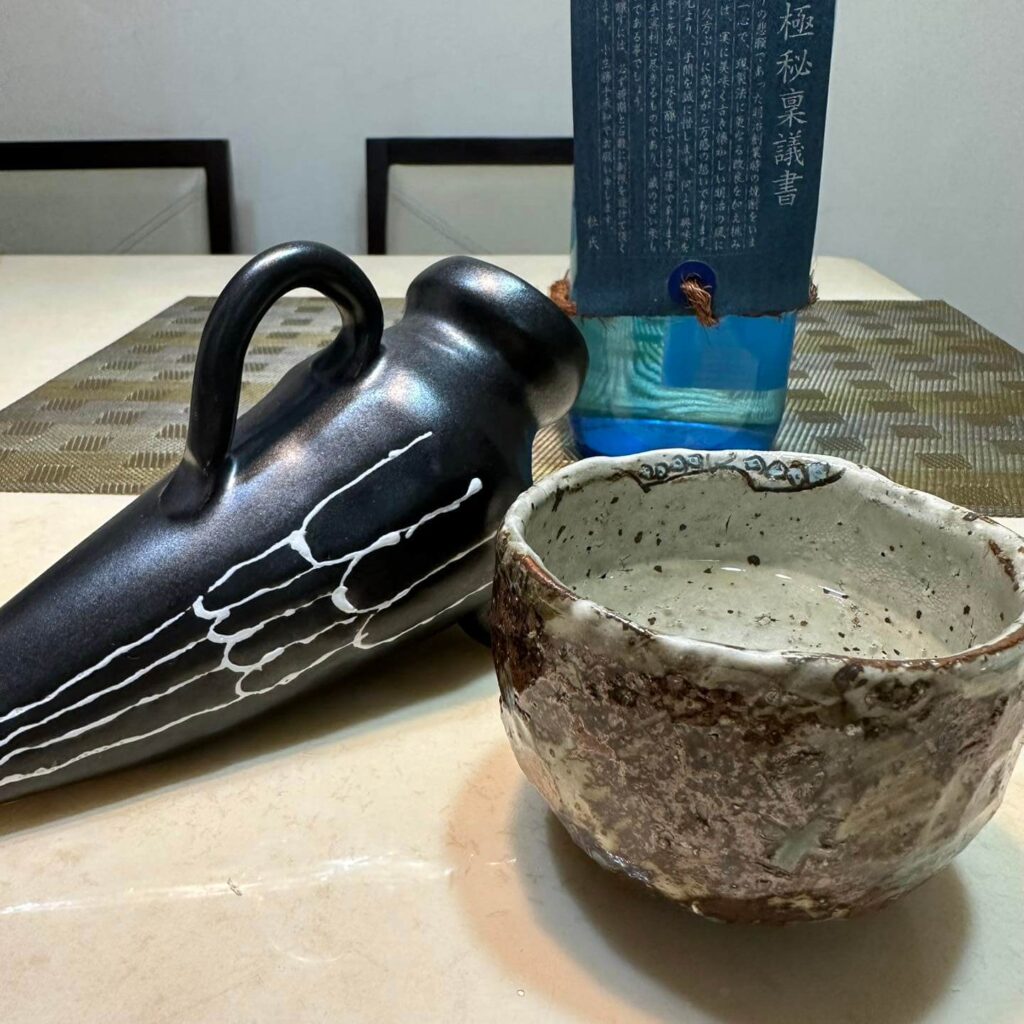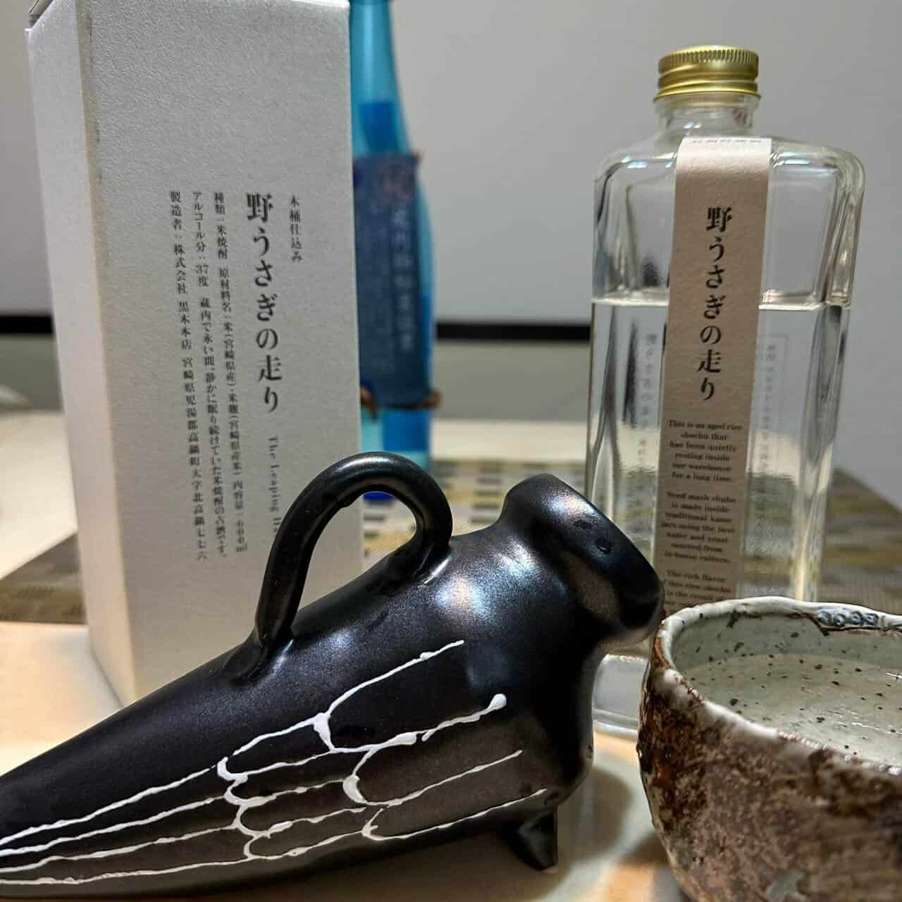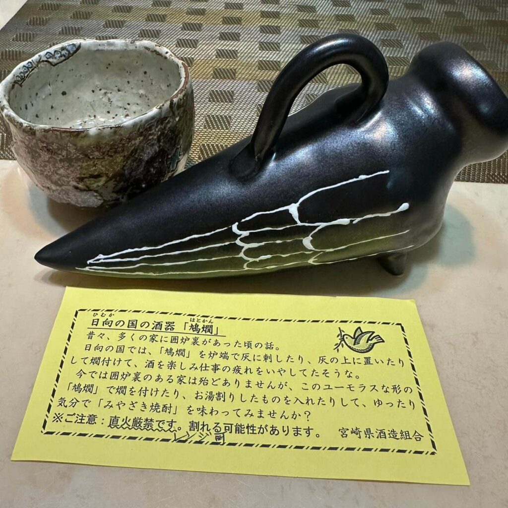 鳩燗 はとかん(又稱 鳩徳利 はとどっくり)是宮崎(日向國)的傳統酒器,原本是放在地爐邊加熱的,但現在家中普遍沒有這麼有風情的設施,因此他還特別寫上可以微波喔🤣所以我們就從善如流,把原本想用烤箱烤 改成 微波爐了,順便比較一下跟用「黑千代香」爐火煮的差異🤗
