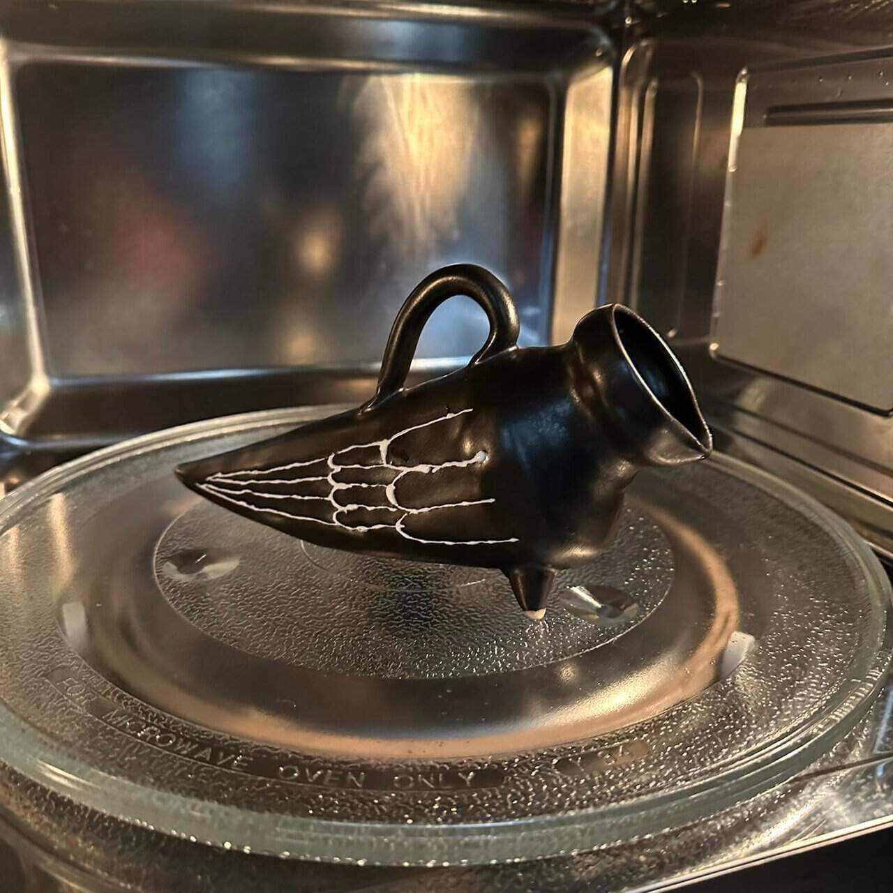 至於為何改良版要把倒酒口改高,是因為鳩燗原本是斜插入爐灰中加熱的,我們這樣平放加熱,容量只剩120~130ml左右,再多酒會容易溢出來,因為裝酒量不多保溫性有夠,但就是兩人喝量太少,要多去熱幾次,自然達到不久坐多運動的效果💪
