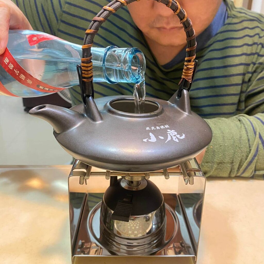 與「時之懷古」搭配的是「美濃燒 黑千代香(黒ぢょか)」,當時總共限定500組,我們在「垂水市 善八酒店」買到的是33號,既然搭配 黑千代香,自然要拿它來煮酒阿