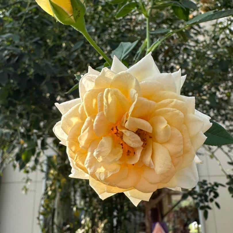 然後重點是,大多數的玫瑰都沒啥味道,我們經燒酎的訓練,自認嗅覺應該也有一般人水準,但沒味道就是沒味道,跟大小沒關係,小顆的當然香氣可能淡一點,但巴掌大的可能也是沒味道的,所以根本不會有蜜蜂靠近 另外也有看到,毛毛蟲直接住在大花中的,花吃得很開心,蛻變後一定會變花癡吧😆