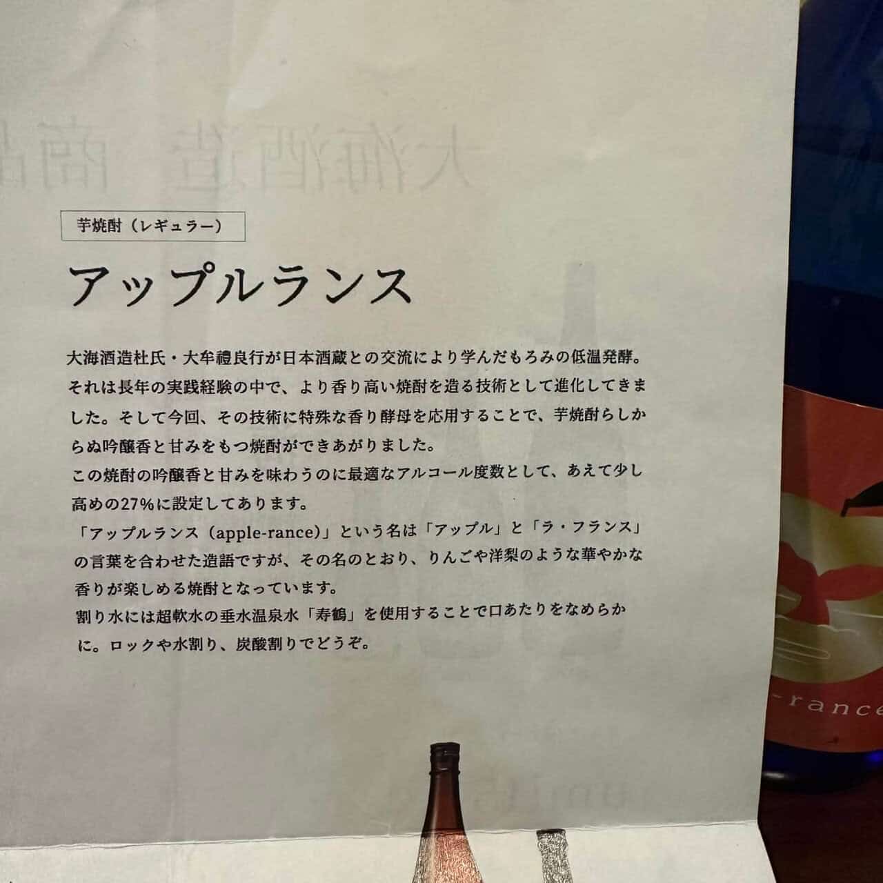 Apple Rance比較是那種,要多喝一點才能感受到他特殊風味的燒酎,對於幾ml的試飲模式,是比較弱勢的,很推薦給想找「荔枝、哈密瓜、香蕉」外的果香型燒酎的酎友,雖然天氣變冷但開暖氣喝也是很爽,再來我也想來試試酒造沒推薦的其他熱飲方式,之後再來跟大家分享心得
