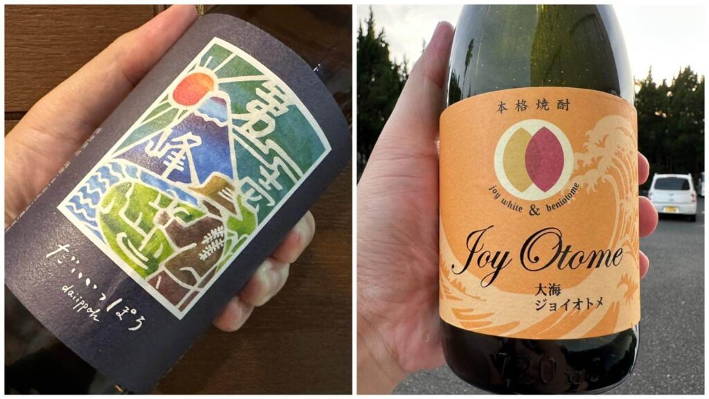 先劇透了一下,到日本的話,大海酒造有一隻Joy-Otome,我們喝起來覺得有點草莓果醬的味道耶,跟一般芋燒酎比,有比較甜但不會到膩拉,畢竟燒酎是不含糖的,喝了覺得好神奇!