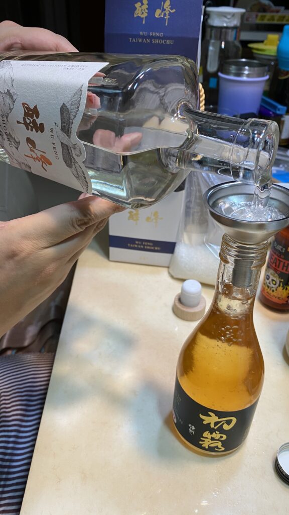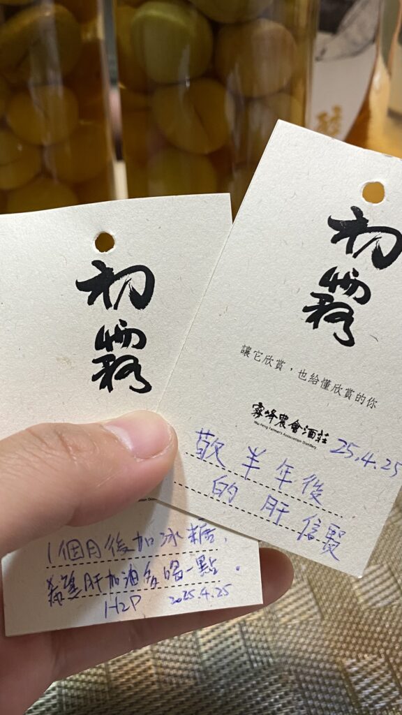 小瓶子裡還有酒,但是這種留白不應該,再拿出40度的醉峰加給他滿,原本酒是琥珀色轉變成金黃,它的滋味就再給梅味初霧與醉峰一點時間,等他們融為一體再來開瓶乾杯👍