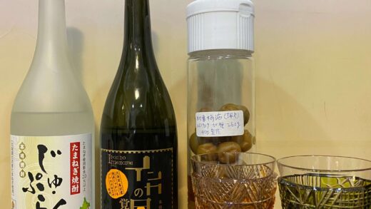 從箱裡取出的梅酒外觀還是維持先前的狀態😁,酒很清澈,透明的玻璃裡是黃澄澄的梅子,每顆都還是很飽滿,只是果肉上刀割的痕跡變得明顯一點。因為要加不少砂糖,所以先移出一些酒液到小瓶裡,小心翼翼倒出來的酒透過玻璃能看得很清楚,透明的酒變成琥珀色,濃郁透光的感覺很像過桶威士忌