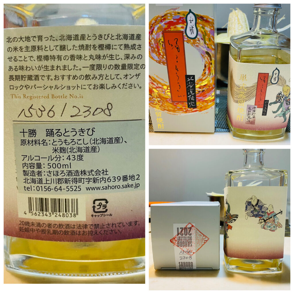 而今天用來 玉米水割的「35% 踊るとうきび」是之前疫情時,酒造為了生存募資產生的限定產品,總共生產2308罐,味道算蠻清甜的,我們是在網走機場附近的道之驛買到,從Google照片看來在酒造直販所,應該也還有少量可購買