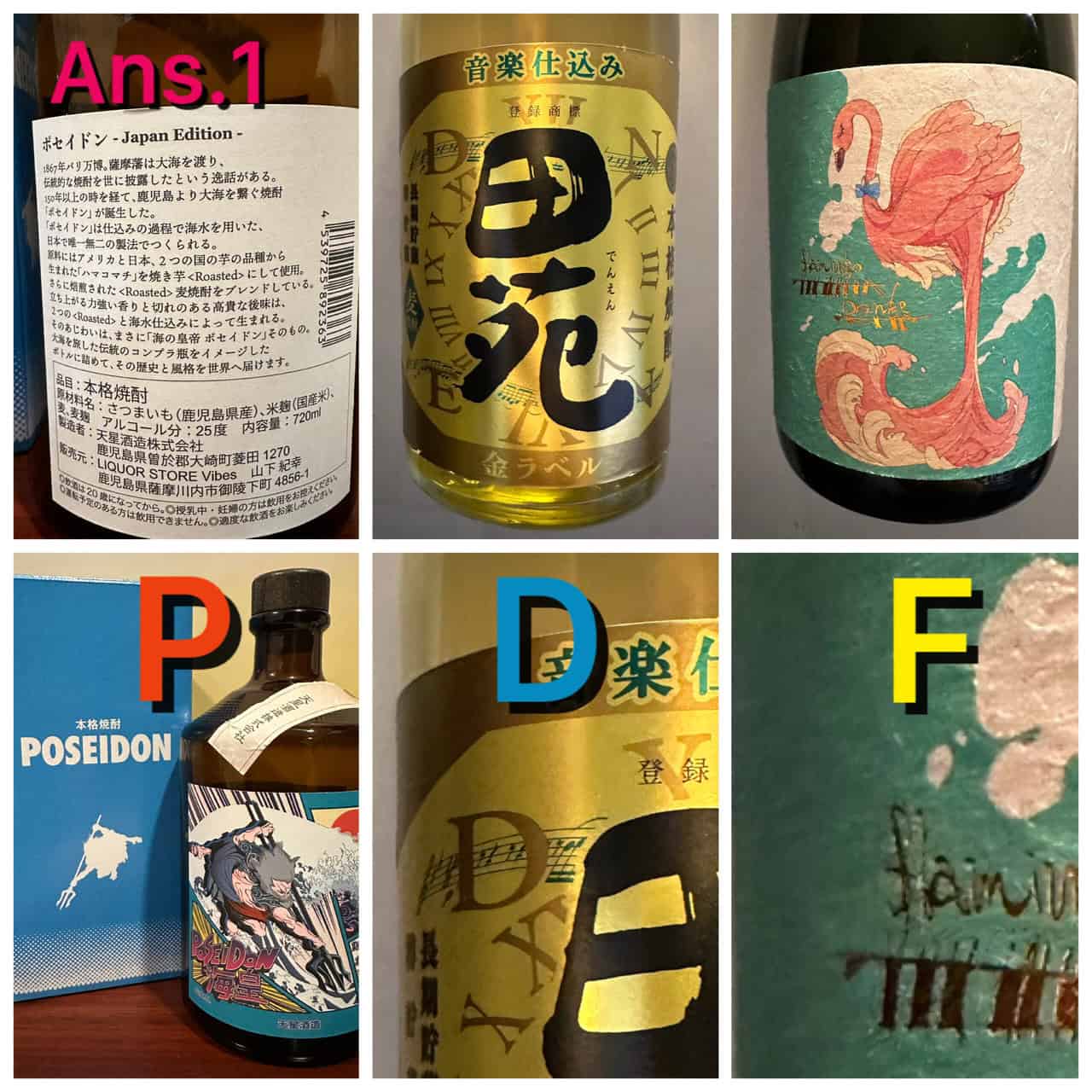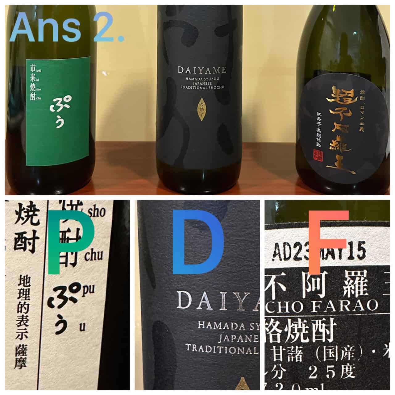 兩組燒酎 酒名的第一個英文字,都會對應到PDF,他們分別是: