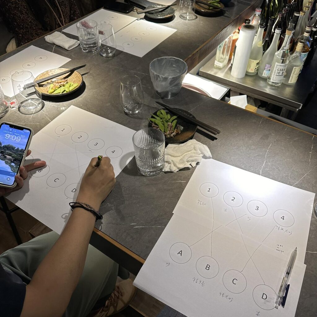 最後管爺還帶大家嘗試JSSA的結業測驗,只是我們是簡單版的只有四隻,分別是 純米大吟釀、吟釀、特別純米、本釀造