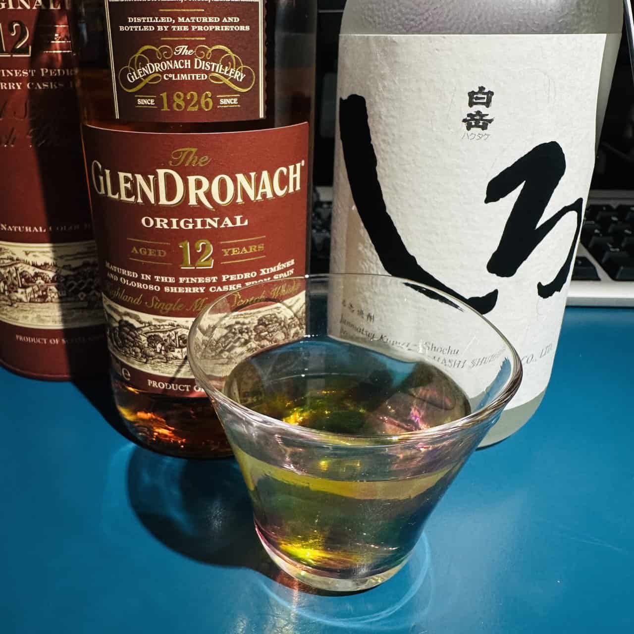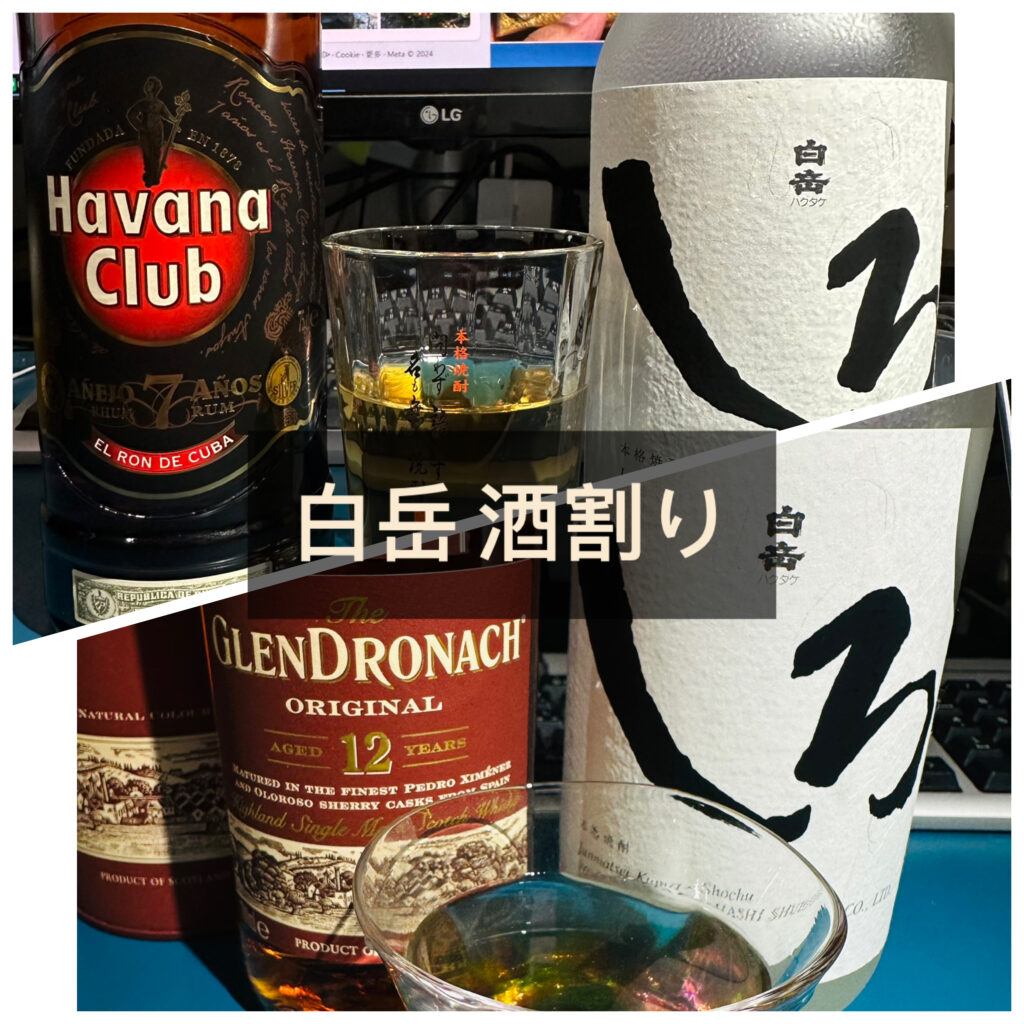 先前酒友推薦使用 GlenDronach 12yr這隻很超值有過PX的雪莉威做燒酎酒割,這隻除了葡萄乾感明顯外,還有一種我很愛吃的「台式咖哩餃」味道,這幾天拿來搭「白岳しろ」我覺得意外不錯